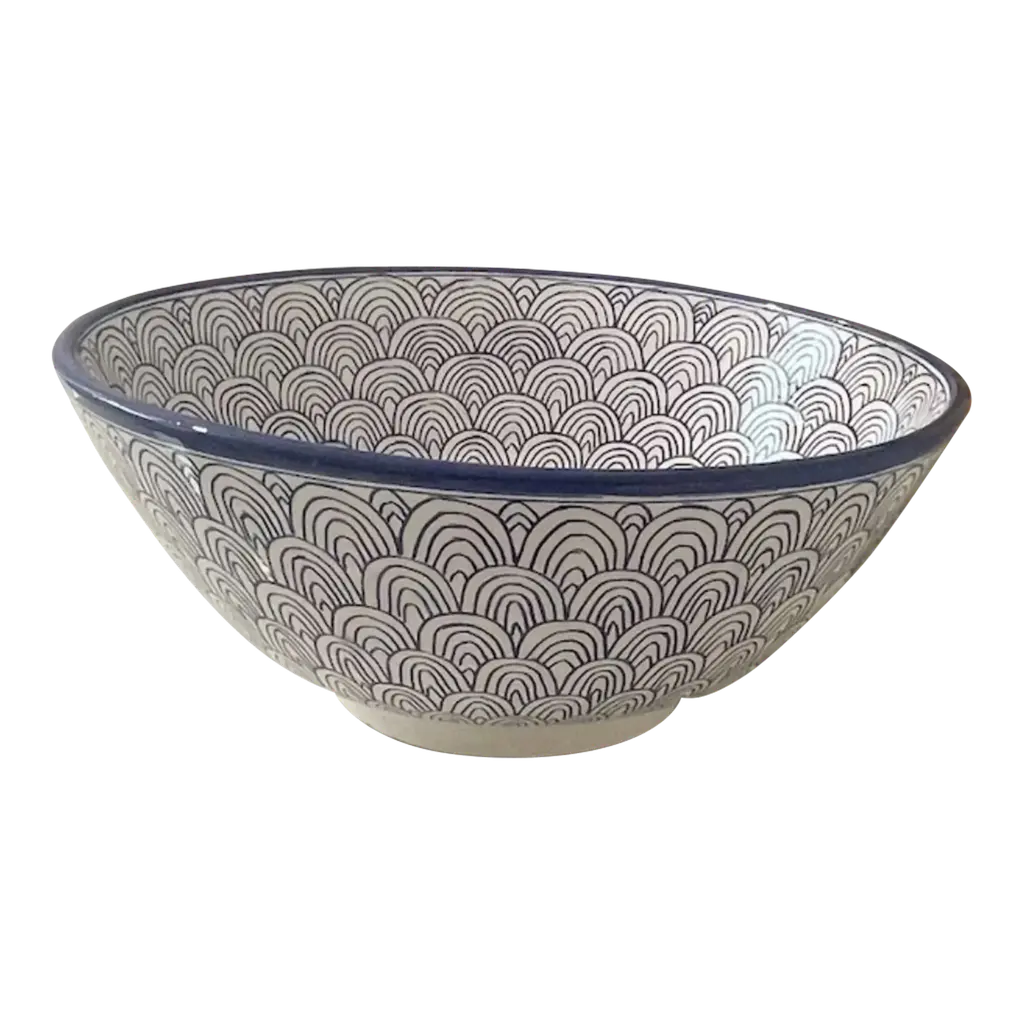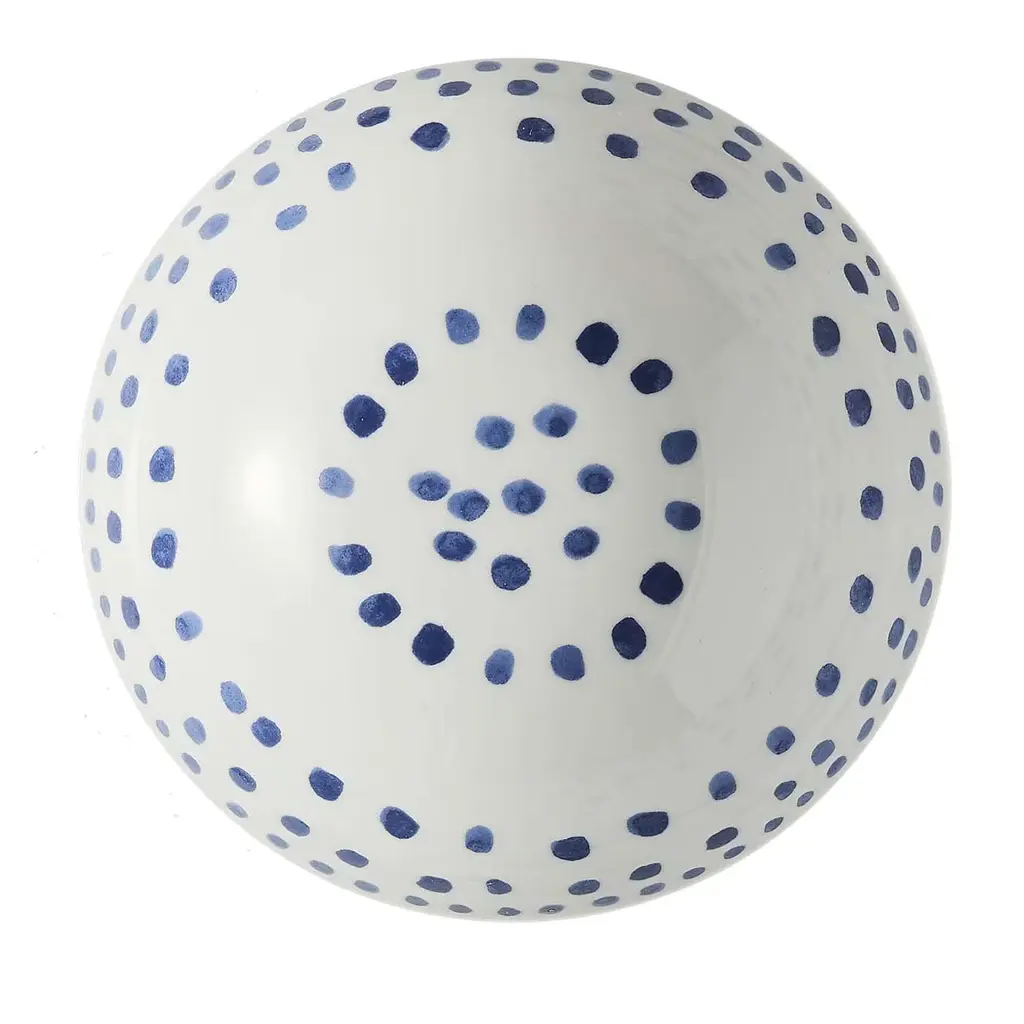 Charming in its simplicity, this superb set of bowls will add a delicate touch to a minimalist kitchen or dining table decor. The classic silhouette is fashioned of white porcelain and is decorated with dark-blue dots elegantly applied along the inner rim and in the center of the bowl, their irregular edges and casual arrangement are signs of a handmade touch. Best paired with other pieces from the Cobalto or Cachemire series. Bowl measures 15 cm.