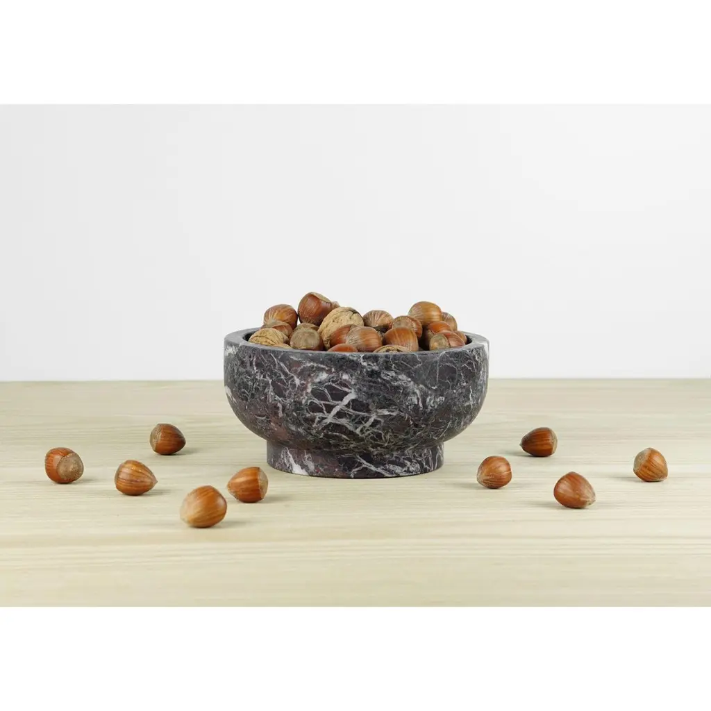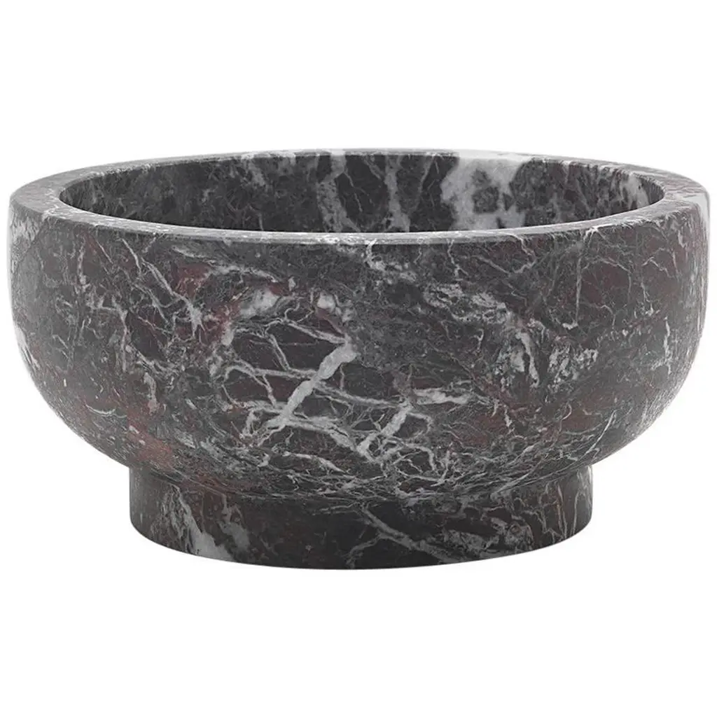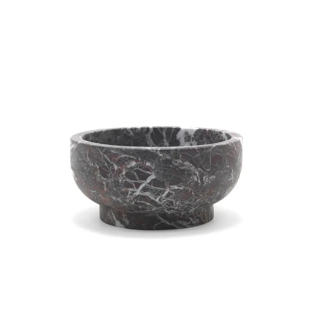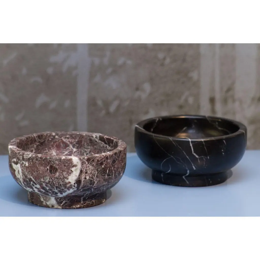 A set of 2 memory bowls - black & red by Cristoforo TrapaniMagnolia table collectionDimensions: 17 x 8.5 cmMaterials: Rosso LevantoAlso available: Black (Nero Marquinia)Contemporary chefs love to construct their culinary creations to enhance their impact; it’s not difficult therefore, to imagine they also love to create the props. Cristoforo Trapani, chef of Magnolia, the stellar restaurant at the Hotel Byron in Forte dei Marmi, has translated his culinary creativity to design. These two worlds meshed instantly: at the table or on a sideboard, his tiered cake stand PRE, hosts sweet and savoury finger food to be offered to guests in a creative and unexpected way.The bread basket of the Apuan Alps, in white or black marble, is ready to cradle the great Italian bread making tradition; the artichoke brazier is his chef-d’oeuvre, and the soup tureen, are all objects of a simple cuisine that is redolent of lemons, sea and sun. They are not limited to functionality, but gleam with the marble’s calcite.Stellar Chef of “La Magnolia” in Forte dei Marmi. His early experiences of working with fresh and simple ingredients from his native land, lead him to formulate a concept of cuisine that is simple and rewarding.His meetings with masterful chefs such as Heinz Beck, Antonino Cannavacciuolo, Moreno Cedroni and Davide Scabin, refined the personality of a chef who can capture and reinterpret the rich traditions of the south, combining them it in a straightforward way with the honest, gastronomic resources of Tuscany; from Lunigiana to Versilia, where he lives.