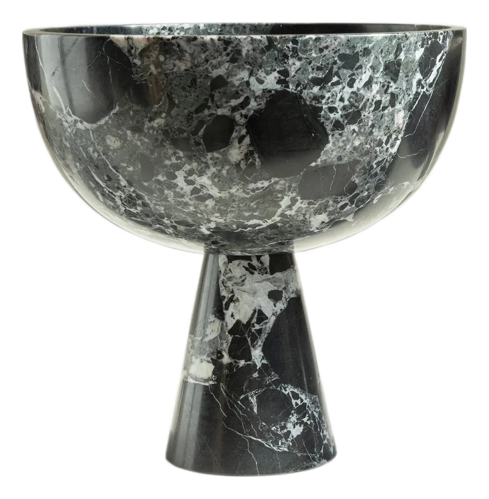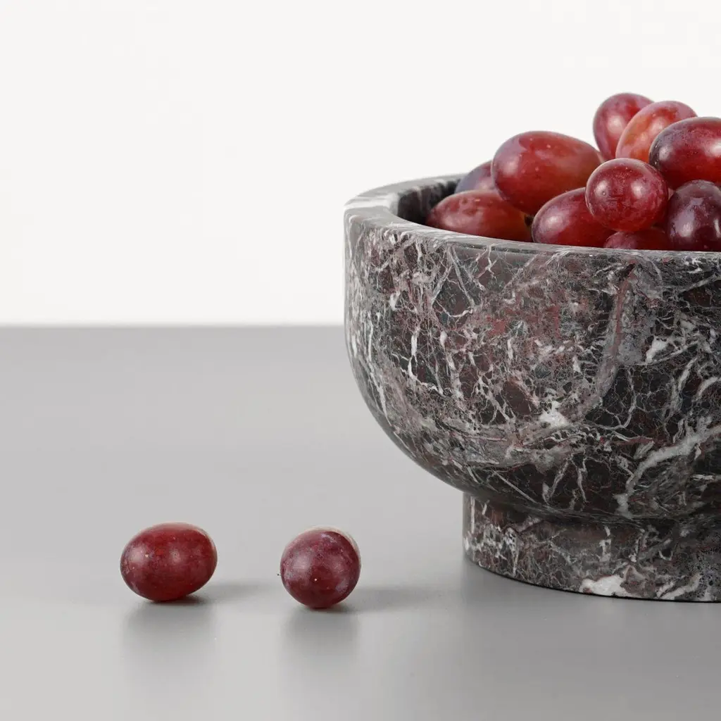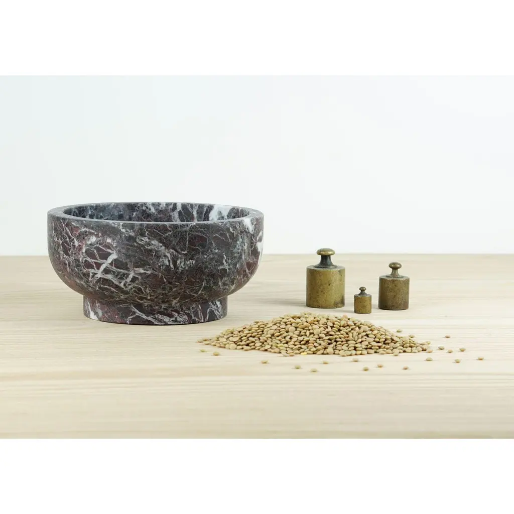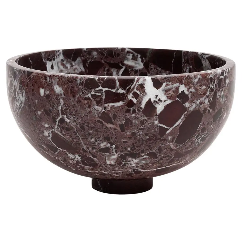 A set of 2 memory bowls - black & red by Cristoforo TrapaniMagnolia table collectionDimensions: 17 x 8.5 cmMaterials: Rosso LevantoAlso available: Black (Nero Marquinia)Contemporary chefs love to construct their culinary creations to enhance their impact; it’s not difficult therefore, to imagine they also love to create the props. Cristoforo Trapani, chef of Magnolia, the stellar restaurant at the Hotel Byron in Forte dei Marmi, has translated his culinary creativity to design. These two worlds meshed instantly: at the table or on a sideboard, his tiered cake stand PRE, hosts sweet and savoury finger food to be offered to guests in a creative and unexpected way.The bread basket of the Apuan Alps, in white or black marble, is ready to cradle the great Italian bread making tradition; the artichoke brazier is his chef-d’oeuvre, and the soup tureen, are all objects of a simple cuisine that is redolent of lemons, sea and sun. They are not limited to functionality, but gleam with the marble’s calcite.Stellar Chef of “La Magnolia” in Forte dei Marmi. His early experiences of working with fresh and simple ingredients from his native land, lead him to formulate a concept of cuisine that is simple and rewarding.His meetings with masterful chefs such as Heinz Beck, Antonino Cannavacciuolo, Moreno Cedroni and Davide Scabin, refined the personality of a chef who can capture and reinterpret the rich traditions of the south, combining them it in a straightforward way with the honest, gastronomic resources of Tuscany; from Lunigiana to Versilia, where he lives.