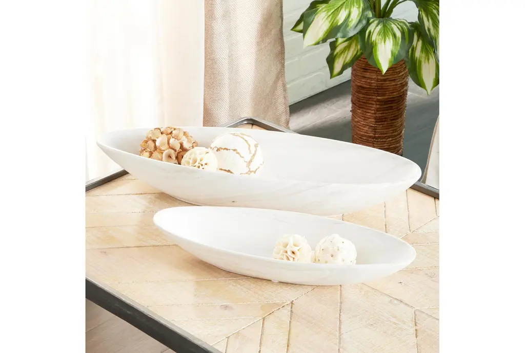 Set Of 2 Natural White Oval Ceramic Porcelain Bowl | 2 Piece Set | Sets