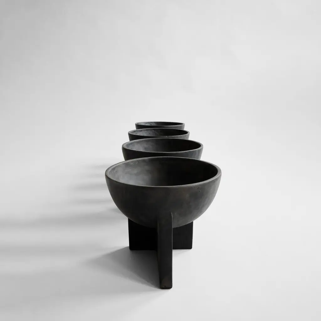 Set of 2 osaka bowls big by 101 CopenhagenDesigned by Nicolaj Nøddesbo & Tommy HyldahlDimensions: L 25 / W 25 / H 22 cmMaterials: Fiber ConcreteOsaka is inspired by ceramic storage objects from Asia. The simplified half sphere shape is lifted from the ground by three massive walls, adding a sculptural detail to the design. With its sculptural and architectural shape, the Osaka bowl brings character into any interior scheme. The bowl is cast in solid fiber concrete, adding a certain heaviness to the brutalistic object, while also creating a unique and refined surface texture. Use the bowl for various decoration purposes or stand alone to create an art piece. Hand glazed natural product therefore the colors may variate. Not waterproof safe. 101 Copenhagen is a Danish design brand founded in 2017. With a vision to honor exquisite quality and craftsmanship, the collection encompasses furniture, lighting and accessories in a timeless, yet modern design. With a true passion for materials and refined textures, organic shapes and colours, 101 Copenhagen presents the epitome of classics and must-have novelties for Scandinavian and international interior connoisseurs alike.