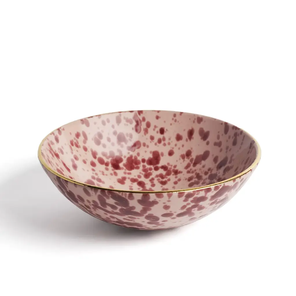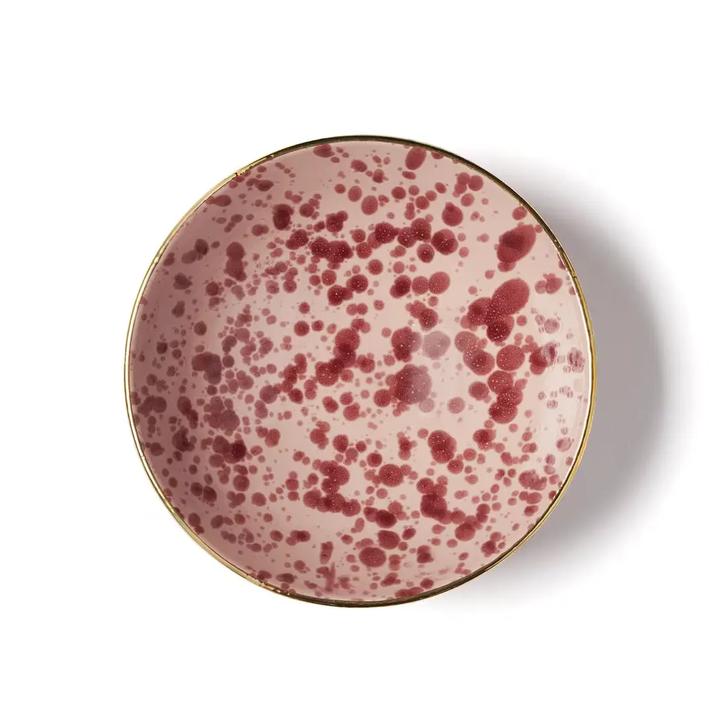 This set of Ceramic Bowls features a distinctive hand-applied speckled design, embodying a unique artistic flair. The sophisticated gold rim adds a touch of luxury, making these bowls perfect for both everyday use and special occasions. Ideal for serving snacks, salads, or desserts, their vibrant red hue allows them to stand out while complementing various dining styles. These exquisite ceramic bowls embrace both functionality and artistry.