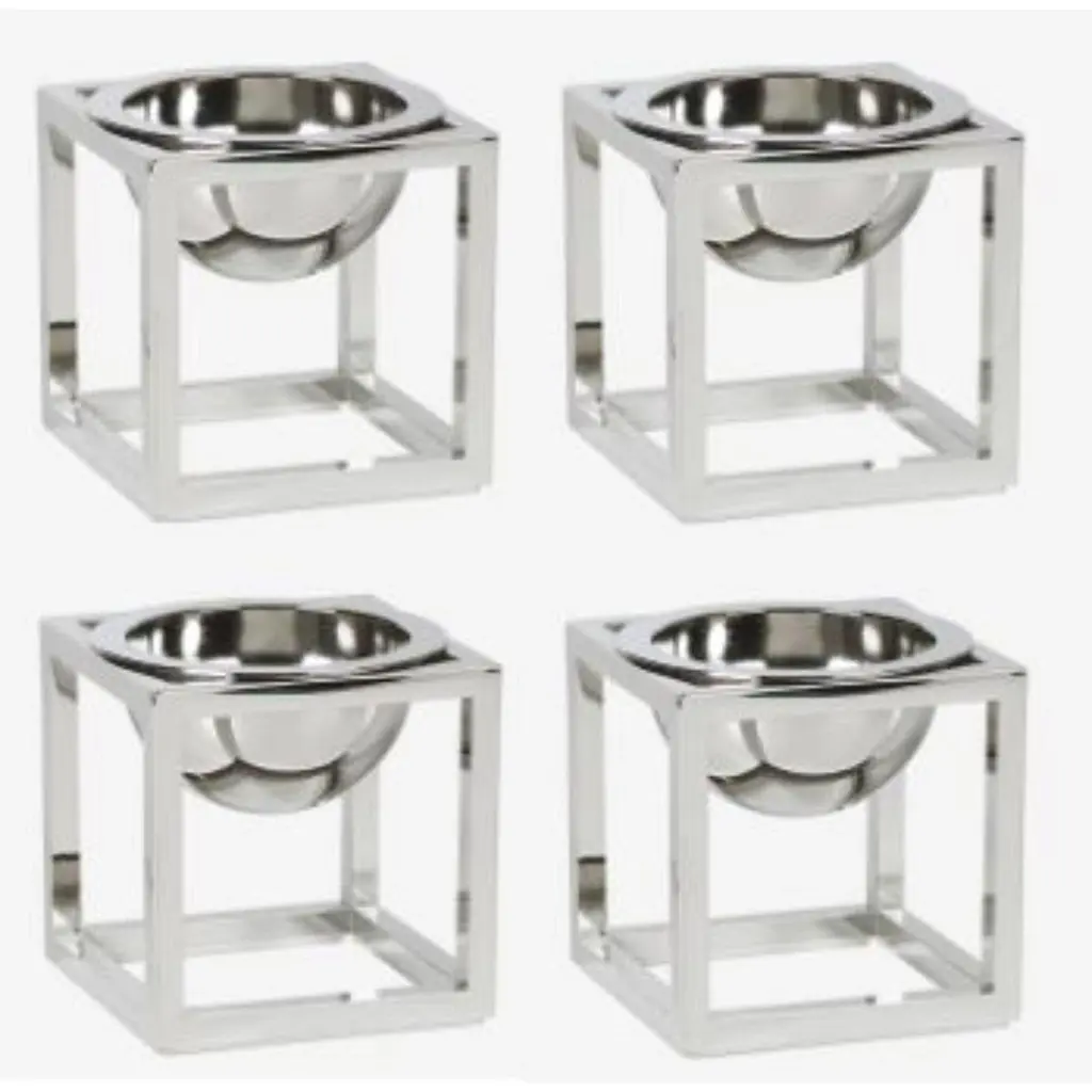 Set Of 4 Nickel Plated Mini Kubus Bowls By Lassen