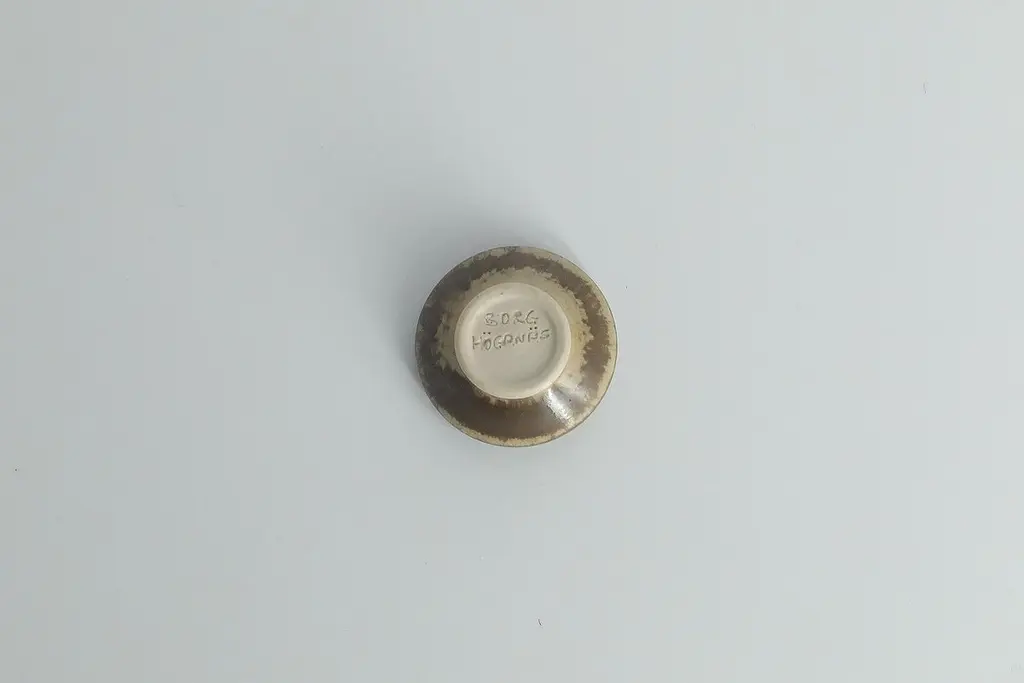 1. Height 1 cm Width 3 cm Depth 3 cm2. Height 1 cm Width 3 cm Depth 3 cm3. Height 1 cm Width 2 cm Depth 2 cm4. Height 1 cm Width 2 cm Depth 2 cmThis set of 4 miniature bowls was designed by Gunnar Borg for the Swedish manufacture Höganäs Keramik during the 1960s. Handmade by the Master, with the utmost care and attention to detail. Bowls dyed in irregular shades of brown, green and gray. Signed with the author's signature and the manufacturer's brand.Gunnar Borg (1926 - 2007) is still one of the leading representatives of Scandinavian ceramic design of the 20th century. Known for miniature, handmade ceramic and stoneware objects, mainly vases. He also created lamp bases, cups, decorative bowls and ashtrays. He started his career at the age of 14 at Andersson & Johansson in Höganäs. From 1940, he worked there for the next 28 years. The artist's creativity and craftsmanship can be seen in every item. In 1968, Borg founded his own workshop, where he operated until his death.Höganäs Keramik formerly AJ Andersson & Johansson Keramik was founded in 1909 by Johannes Olofsson and Sigfrid Johansson. Modern household appliances have taken an indisputable place in the history of Swedish design. Famous ceramicists at AJ/Höganäs included John Andersson, Anne Nilsson, Rolf Palm and Lisa Larrson, and Gunnar Borg. It is currently a design company and part of the Iittala Group, a Finnish art glass company.This set is in original vintage condition.