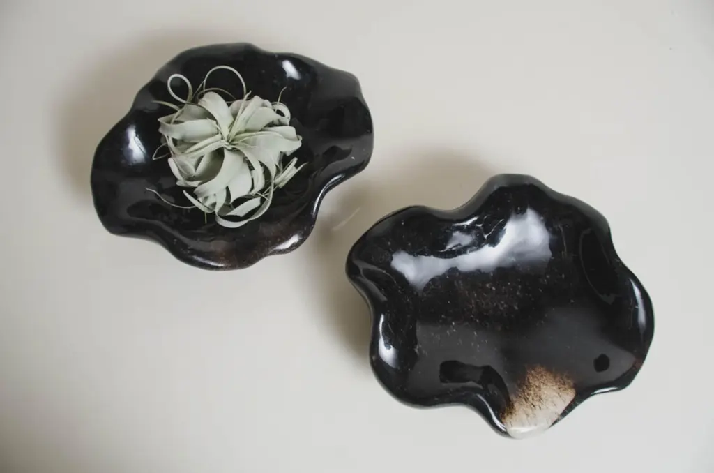 Shallow lotus bowlBlack crystalHand carvedLimited EditionCrystal shapes and inclusions vary.