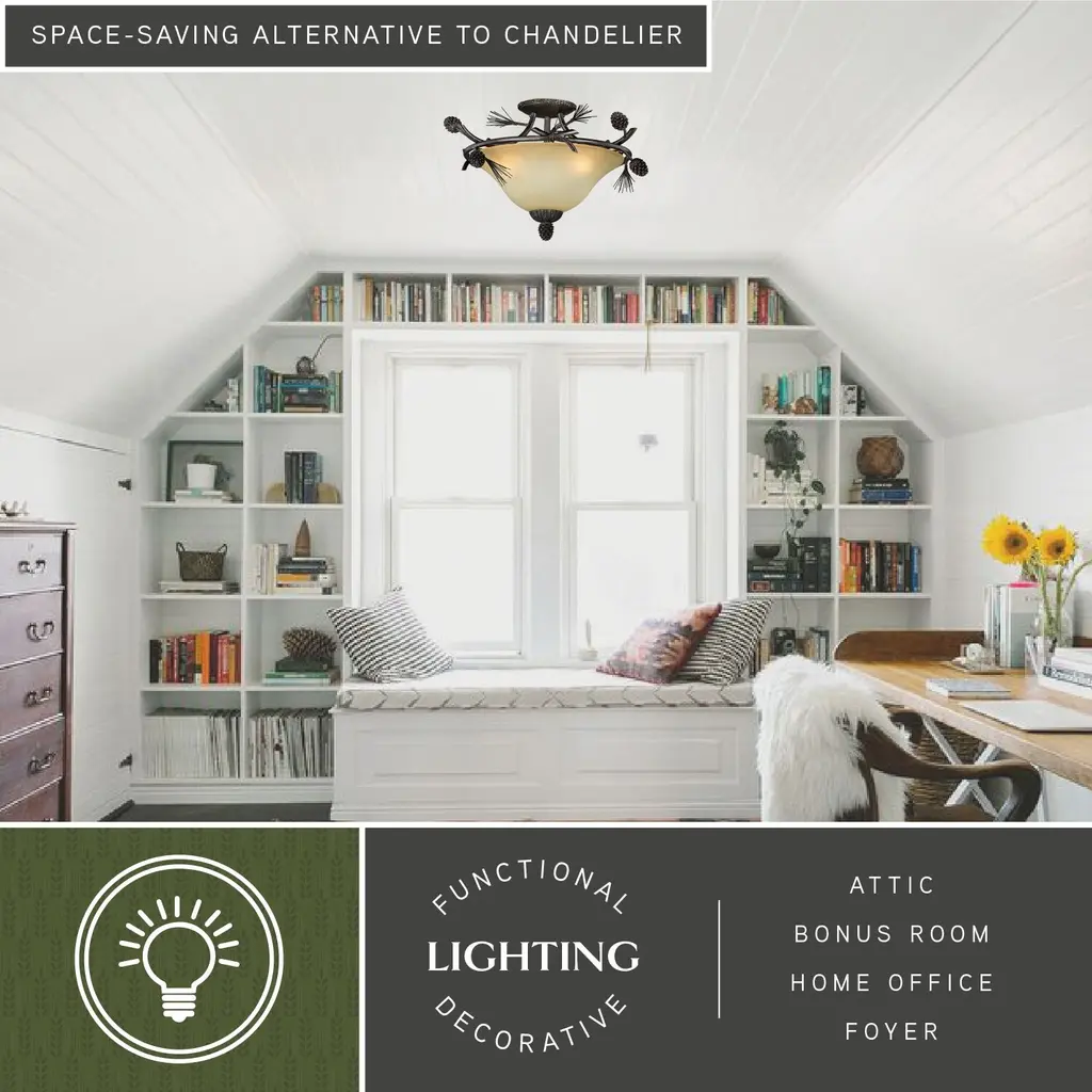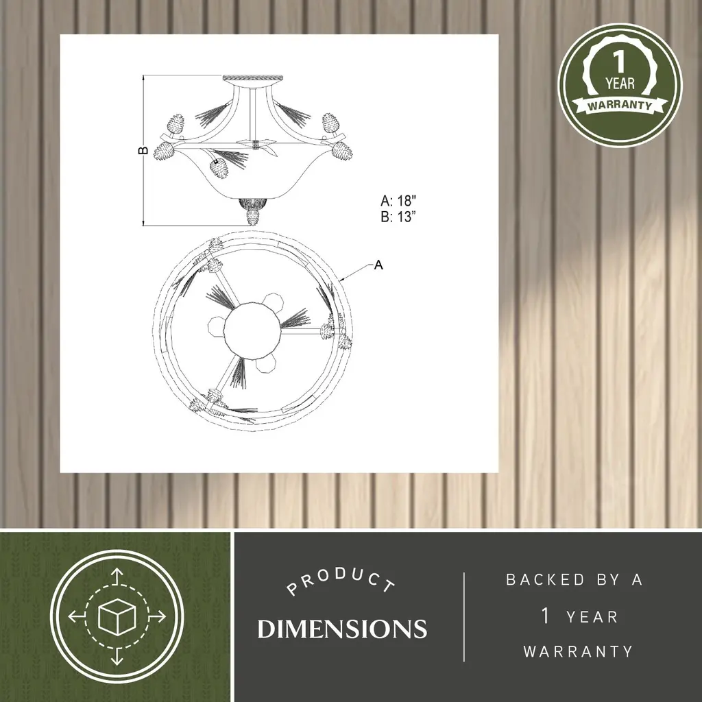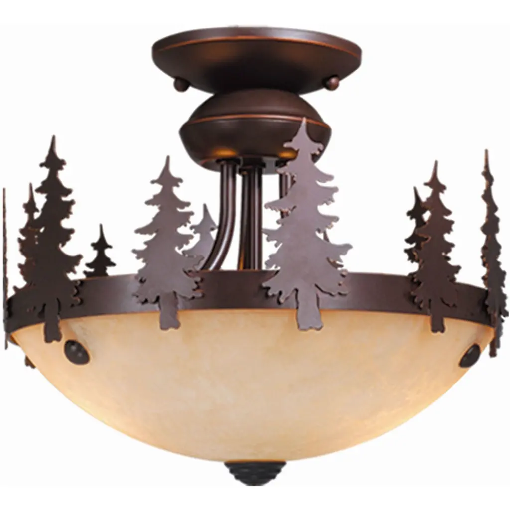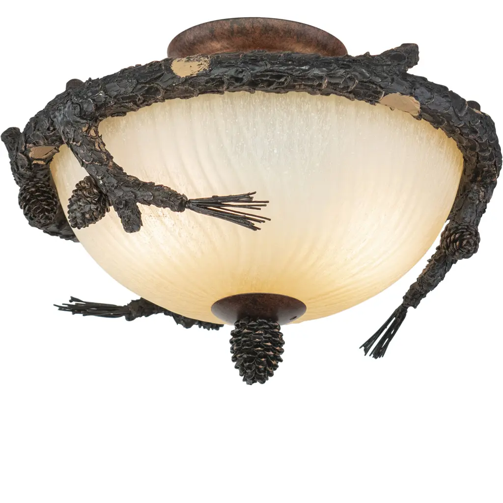 Sierra 18-In W Bronze Rustic Pinecone Bowl Semi Flush Mount Ceiling Light Cream Glass - 18-In W X 13-In H X 18-In D - Black Walnut - 18-In W X 13-In H X 18-In D