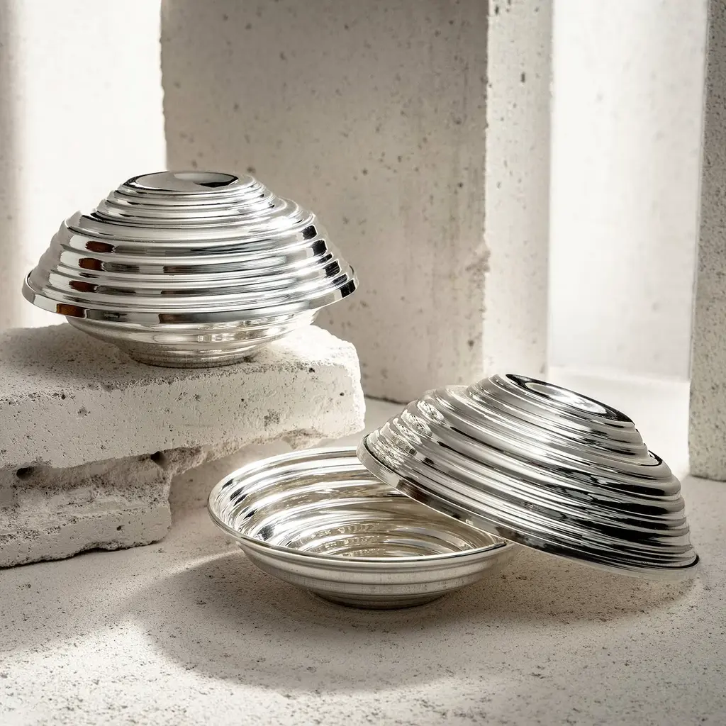 Elevate your home dining experience with our Serrated Full Silver Coated Copper Bowl Set, a beautiful combination of functionality and artistry. This exclusive set includes two 500 ml bowls - a base and a lid - each crafted from solid copper and finished with a shiny silver mirror finish. Designed and handcrafted by skilled artisans, these bowls offer both beauty and versatility, serving as perfect vessels for your culinary creations or as stunning decorative pieces that add a unique shine to any room.