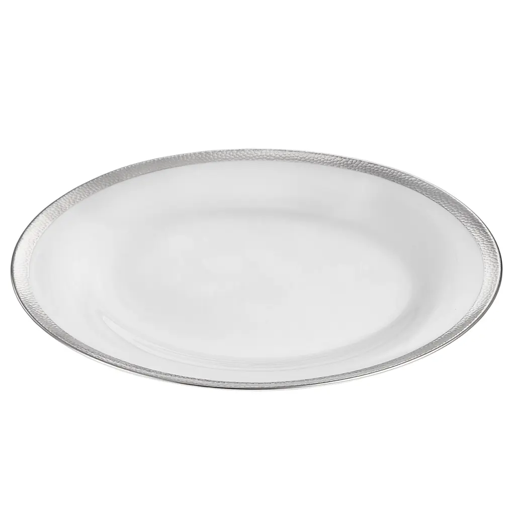 A thick band of sparkling platinum edges each high-quality Limoges porcelain piece in Michael Aram's Silversmith dinnerware collection. It's designed to pair perfectly with a range of settings, from casual to formal.