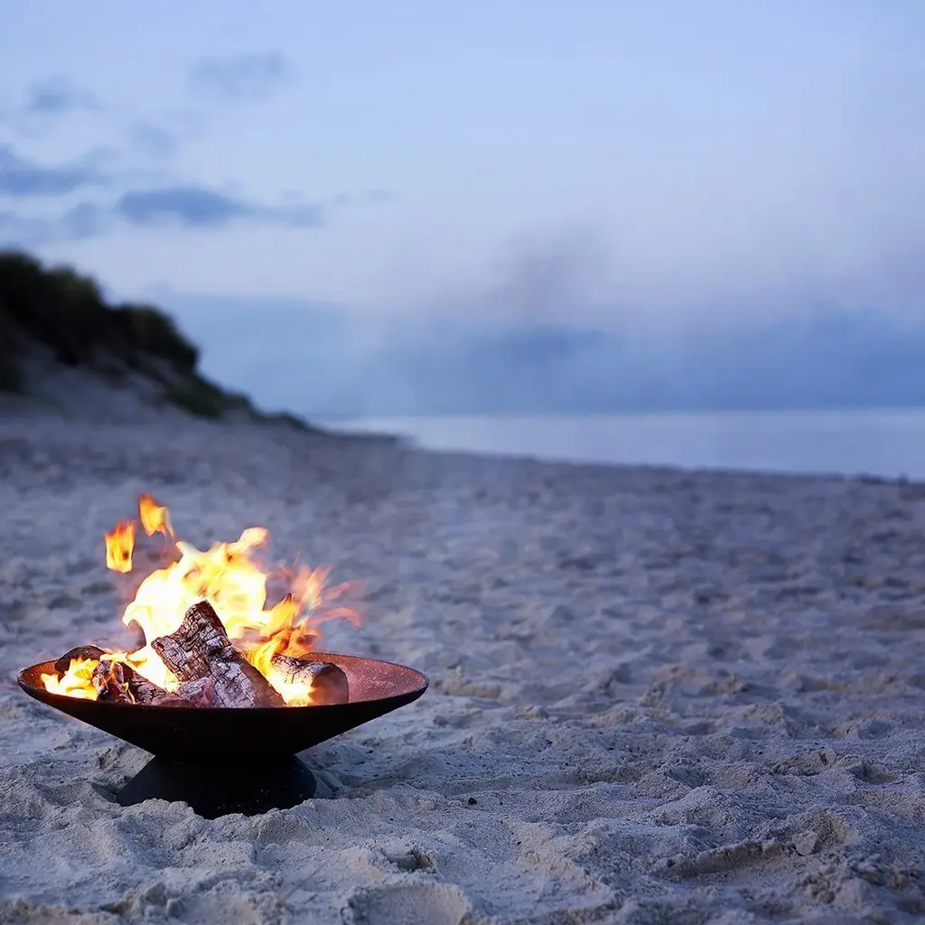Helios is both a fireplace and a grill, constructed to provide optimal air flow for the firewood or charcoals. The intuitive design with side handles makes it easy to move around when cold. Designed by Skagerak Design. The Helios Steel Grill is sold separately.