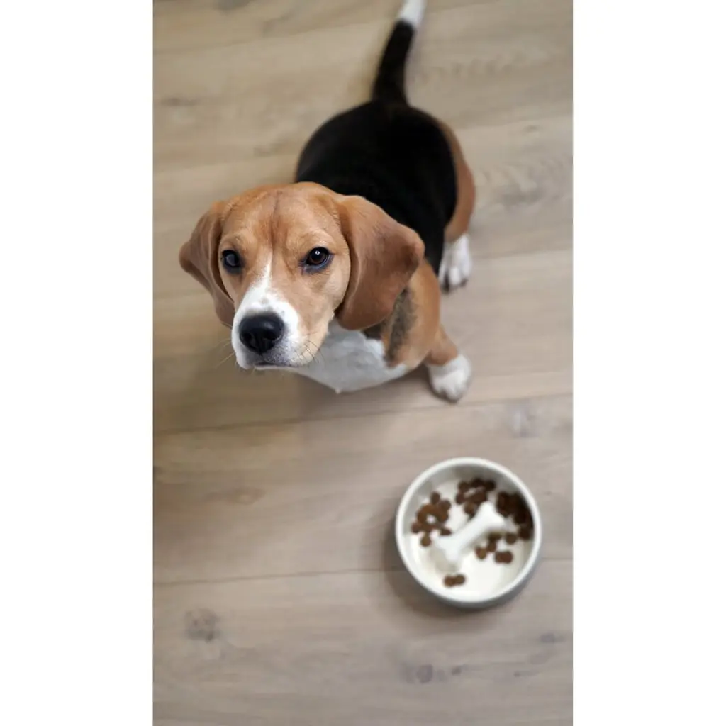 The PAIKKA Slow Feed bowl is a minimalist anti-glutton bowl for dogs who tend to devour their food a bit too quickly. The 3D bone shape in the center of the bowl forces the pet to eat from the edges and work a bit for their food, slowing them down considerably. On the other hand, the design is also beneficial for pets that are not that interested in food: mental stimulation makes eating more enjoyable for the dog. The Slow Feed bowl is handmade from a unique cooling ceramic that stays cool for up to hours, making the food stay fresh for longer and reducing bacterial growth. Before using the bowl, soak it in cold water for 45 seconds to activate the cooling properties. The Slow Feed bowl is also well suited for defrosting raw pet food. What’s more, the bowl is machine washable; however, make sure that the bowl cannot move during washing.