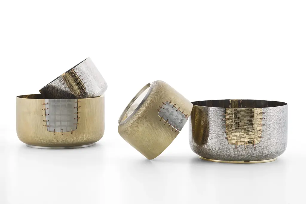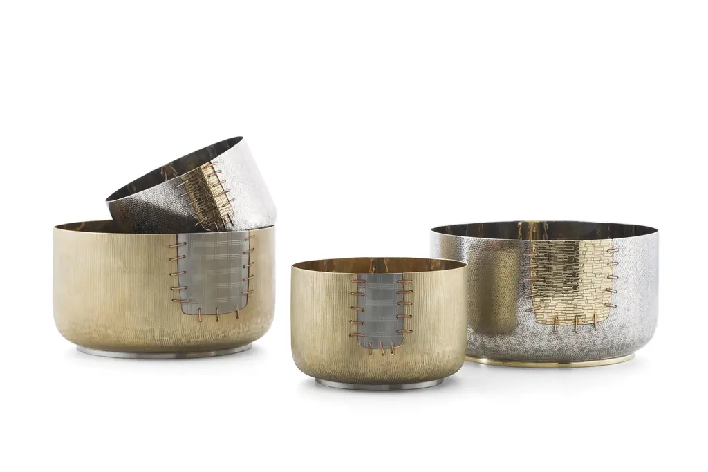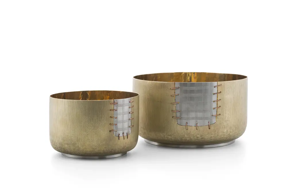 This bowl features the CORTECCIA & SCOZZESE textures with a satin finish on the outside and a polished finish on the inside.