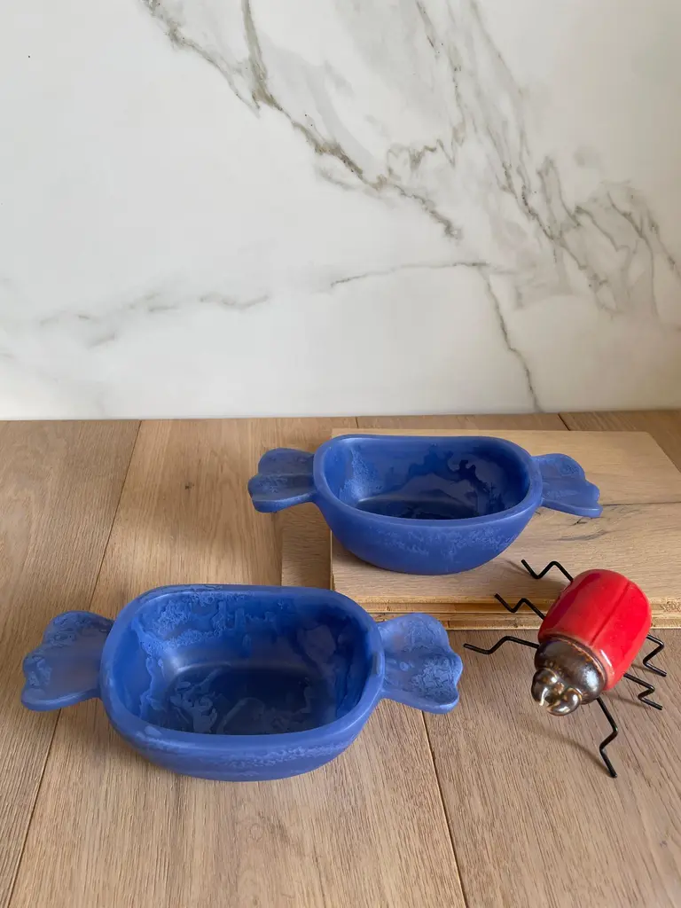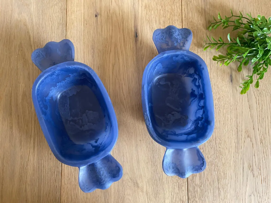 Our Candy Bowl is handmade in traslucid blue resin with marbled texture in blue. It is cute and fun making it a statement piece that can be used to serve your favorite candy or as a decorative accent. A cute way to add color to any table or credenza.Designed by Paola Valle and manufactured in Mexico City by extraordinary artisans. Our goal is to work hand by hand to create outstanding pieces that will represent our passion.Please avoid placing your resin pieces in direct sunlight to avoid discoloration. All resin items are strong and durable but should be treated with care as they can break if dropped or knocked against a hard surface. Colors may vary slightly to the item shown in previous photos, as everything is handmade.Due to the nature of the material every piece will be unique and aesthetically different.