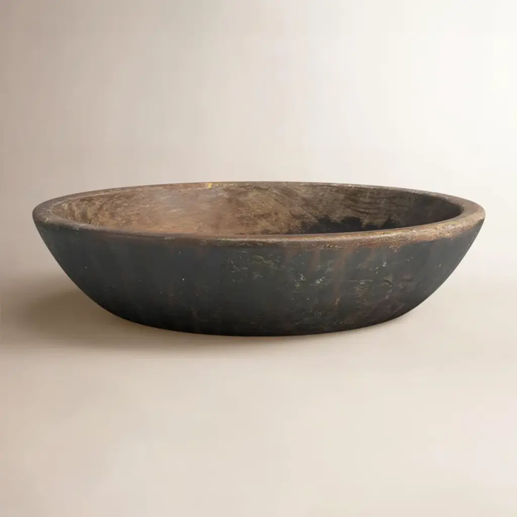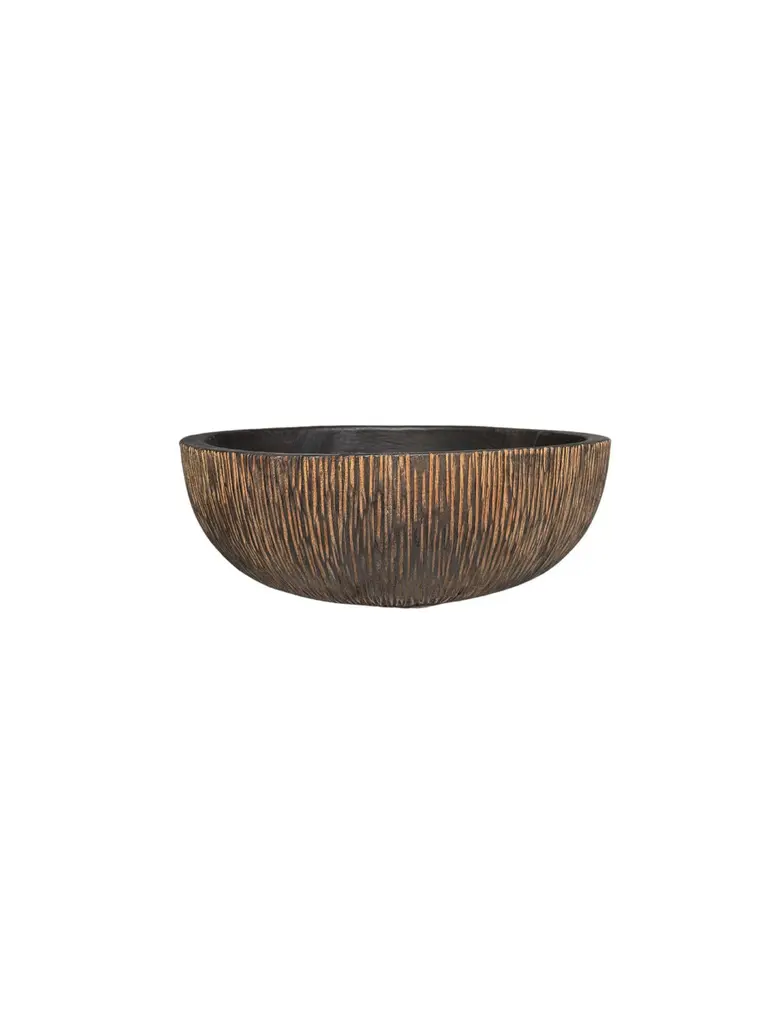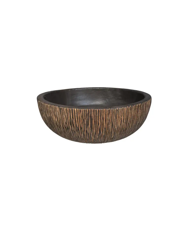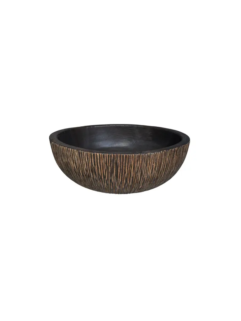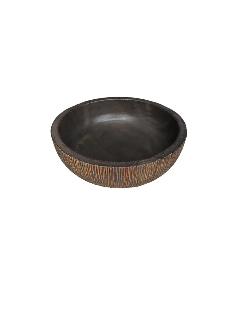 Solid Mango Wood Bowl With Carved Exterior & Burnt Finish