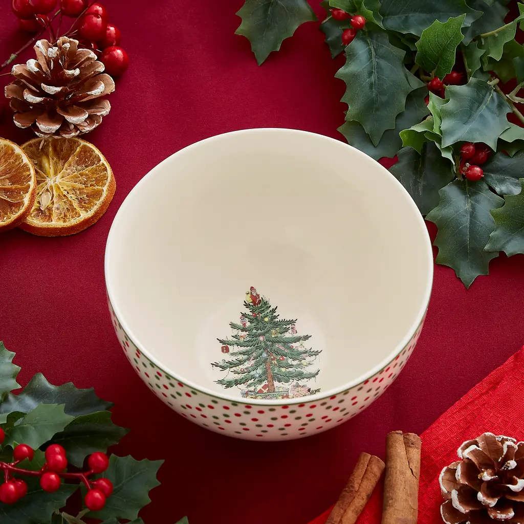 Spode Christmas Tree Polka Dot Rice Bowl Soup Bowls, 6 inch - NewSpode's Christmas Tree Polka Dot Rice Bowl evokes a sweet nostalgia and warm recollections of Christmases past. This Christmas dinnerware is an integral part of seasonal celebrations that the whole family will cherish! Measuring 6 inches, the Christmas tree bowl is suitable for all your favorite rice meals, soups, desserts, side dishes, and more! A holiday favorite since its introduction in 1938, Spode's Christmas Tree pattern is their most well known and widely collected holiday pattern. The Christmas Tree Polka Dot Collection features playful polka dots surrounding the iconic Spode Christmas Tree. A whimsical collection to add cheer to the holidays. For everything from rice to ice cream, the playful polka dot confetti design of the Christmas Tree Polka Dot Rice Bowl pairs delightfully with the Christmas Tree collection. For collecting fun, Spode adds new accessories to the pattern every year, allowing a cherished holiday tradition to grow with time. Match any piece to other items in the collection for seasonal dining merriment. Made from durable materials, our microwave safe bowls are safe for everyday use. Our ice cream bowls are crafted from fine bone china that are durable and solidly-built. Thoughtfully designed, these dessert bowls are microwave, freezer, and dishwasher safe. Our Christmas oatmeal bowl will also make an amazing gift for your friends and family. With a fun and festive design, anyone will easily appreciate these colorful and decorative holiday oatmeal bowls! FEATURES:COLOR:MATERIAL:WHAT'S IN THE BOX: