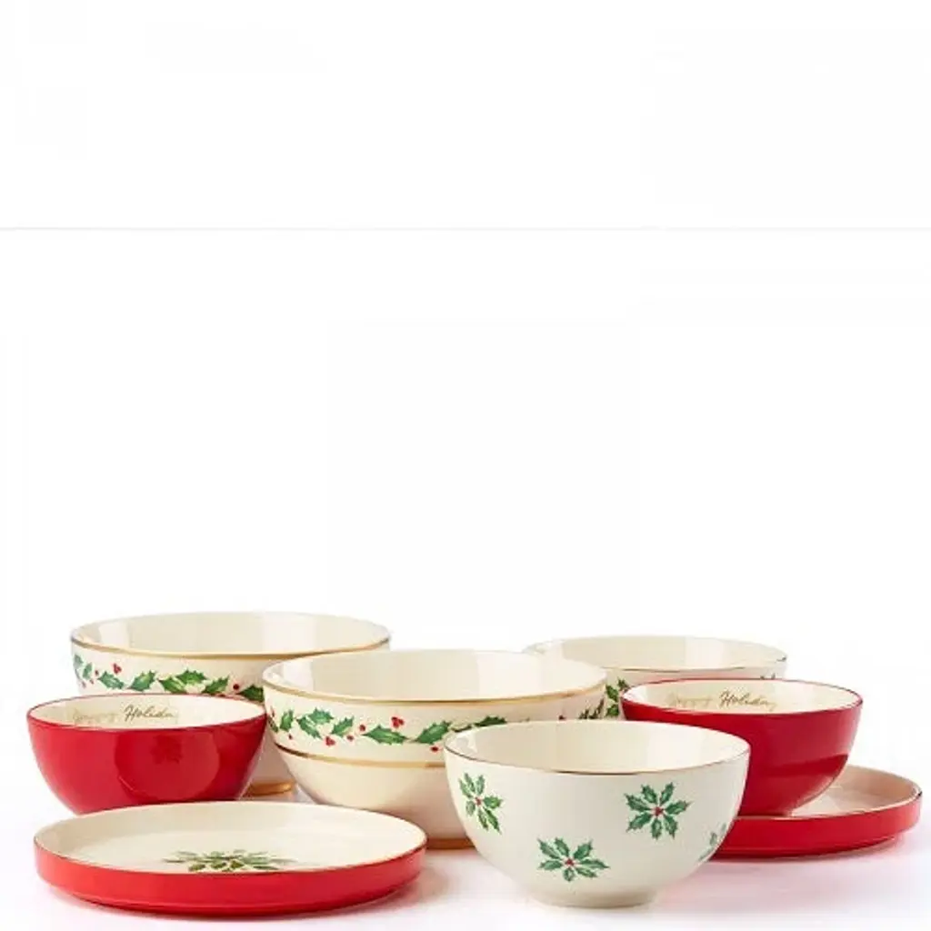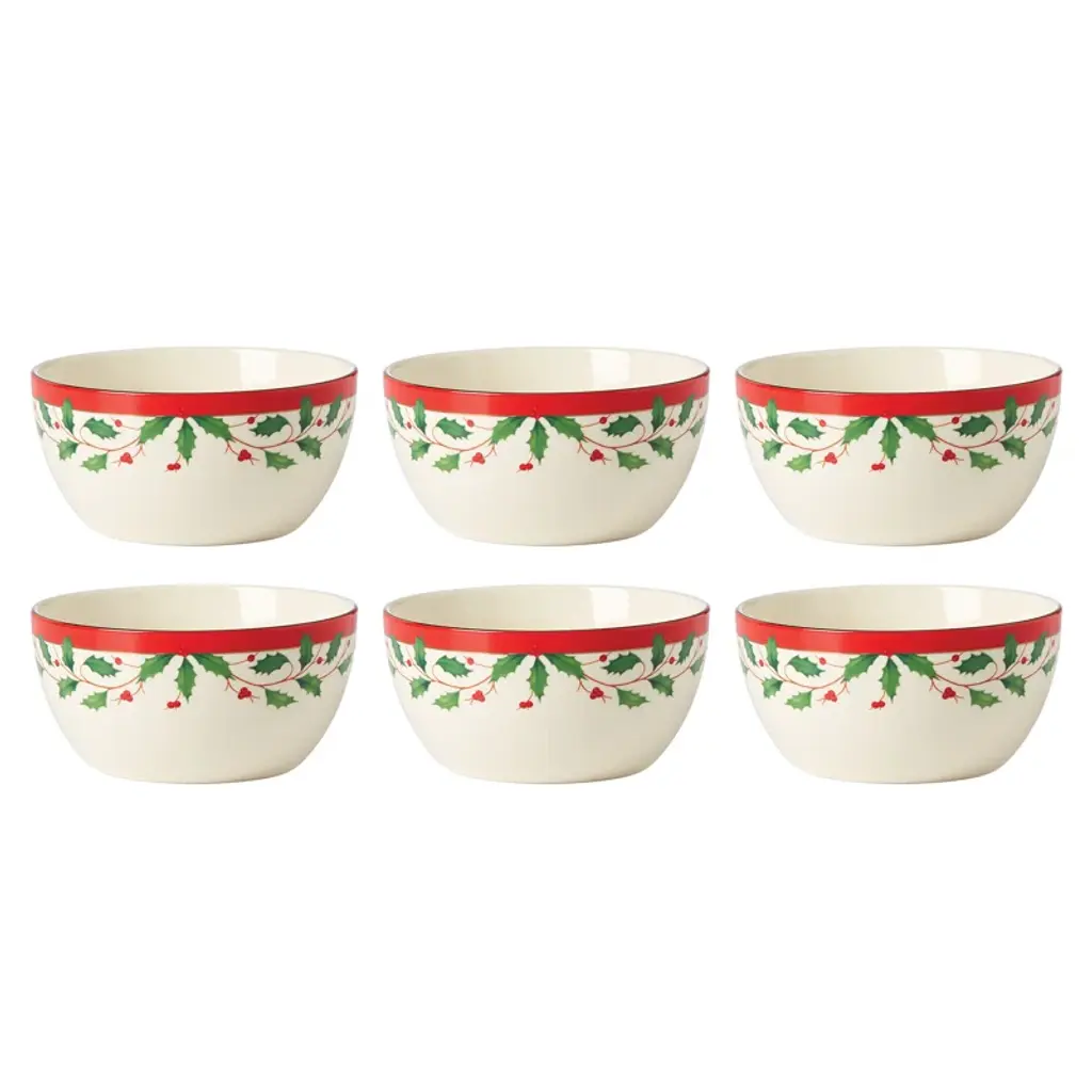 Add a touch of festive cheer to your table with these stacking bowls, perfect for serving rice or side dishes during the holiday season. Crafted from lead-free earthenware, this set of four bowls features a delightful floral pattern and a color rim for an extra touch of elegance. These machine-made bowls are dishwasher, microwave, and oven safe, making them a practical addition to your dinnerware collection. Plus, they're stackable for easy storage when not in use. Enjoy a joyful mealtime with family and friends with these lovely bowls.