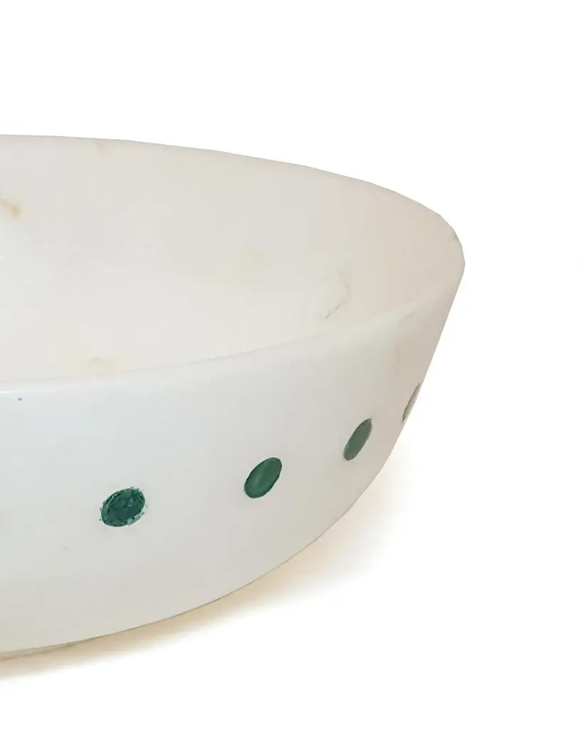 Spotted Bowl Inlay In White Marble Handcrafted In India By Stephanie Odegard