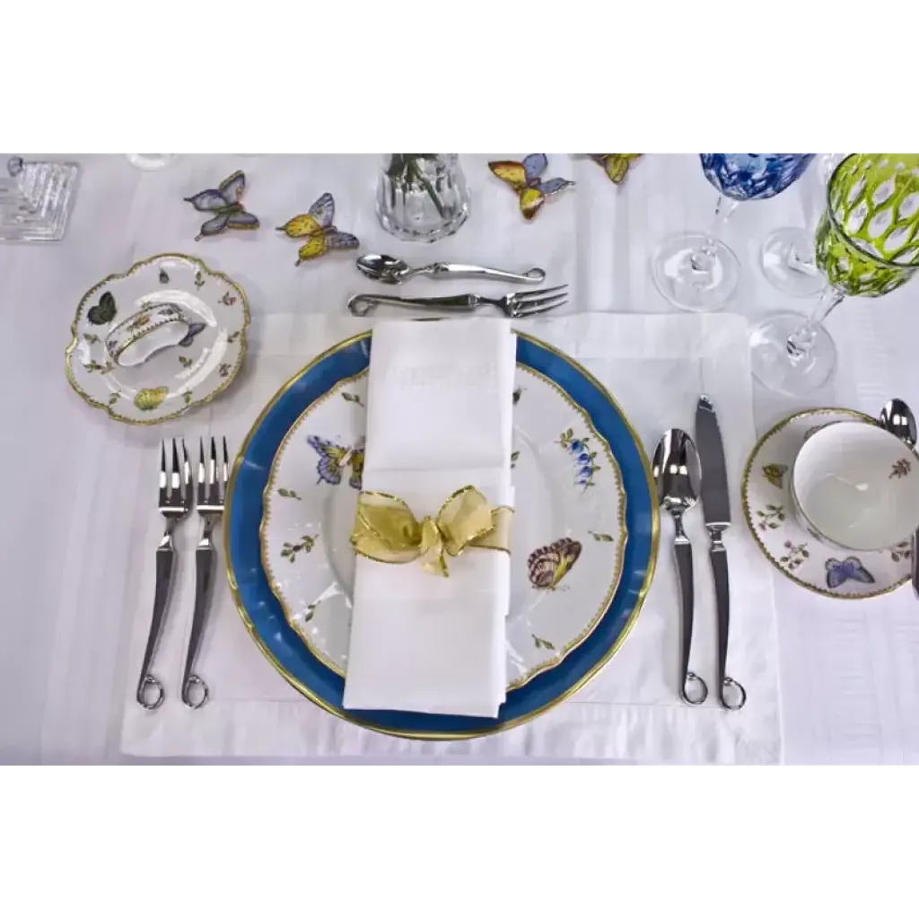 The best selling pattern in Anna Weatherley's dinnerware, Spring in Budapest has her famous butterflies and dragonflies on raised relief porcelain dinnerware. Each piece is hand edged in gold. Five piece place setting includes dinner plate, salad plate, bread & butter plate, tea cup and saucer. Anna Weatherley’s designs are based on botanical sketches from the 18th century as well as Dutch still-life paintings. At home, we find her pieces look just as good on our tables as they do on our walls. Fashion designer, socialite, and artist Anna Weatherley's signature style of butterflies, flowers, and botanical drawings is brought by artists in her factory in Budapest, Hungary. There, they hand-paint and decorate each piece to create a unique work of art that brings beauty to your home all year.
