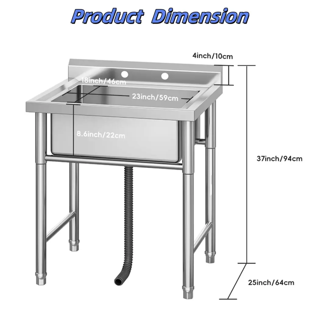 Stainless Steel Commercial Utility Sinks, Freestanding Single Bowl Sinks With Backsplash, Small Prep & Utility Sink