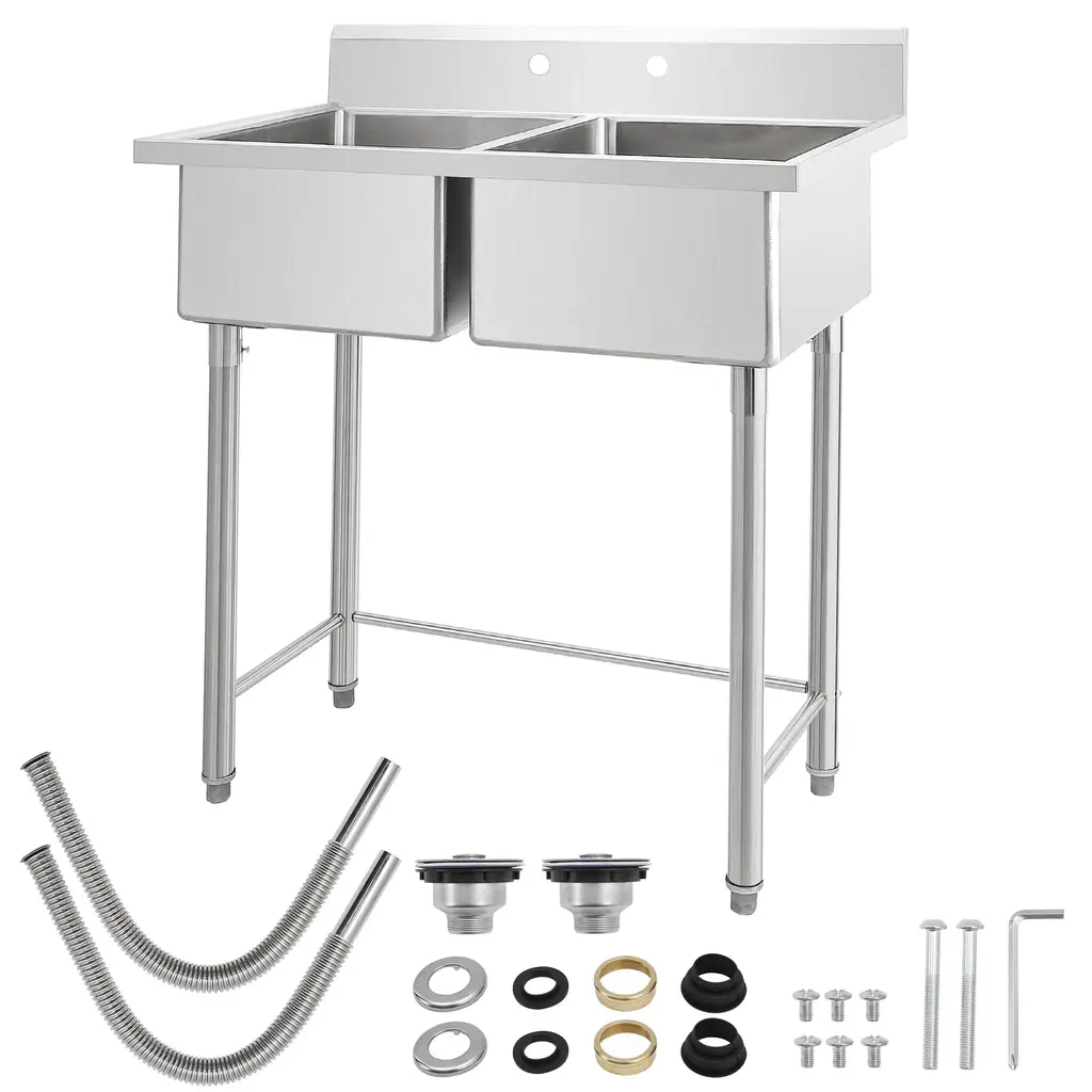 Upgrade your cleaning station with this 36"x21"x40"/41"x23"x44" stainless steel utility sink. Crafted from premium 304 steel, it resists rust, corrosion, and scratches for long-lasting durability. The free-standing double bowl design with sturdy legs offers stability on any surface, while rounded corners make cleaning effortless. Easy to assemble with included drainpipe, it¡¯s perfect for restaurants, kitchens, laundry rooms, garages, and outdoor use.