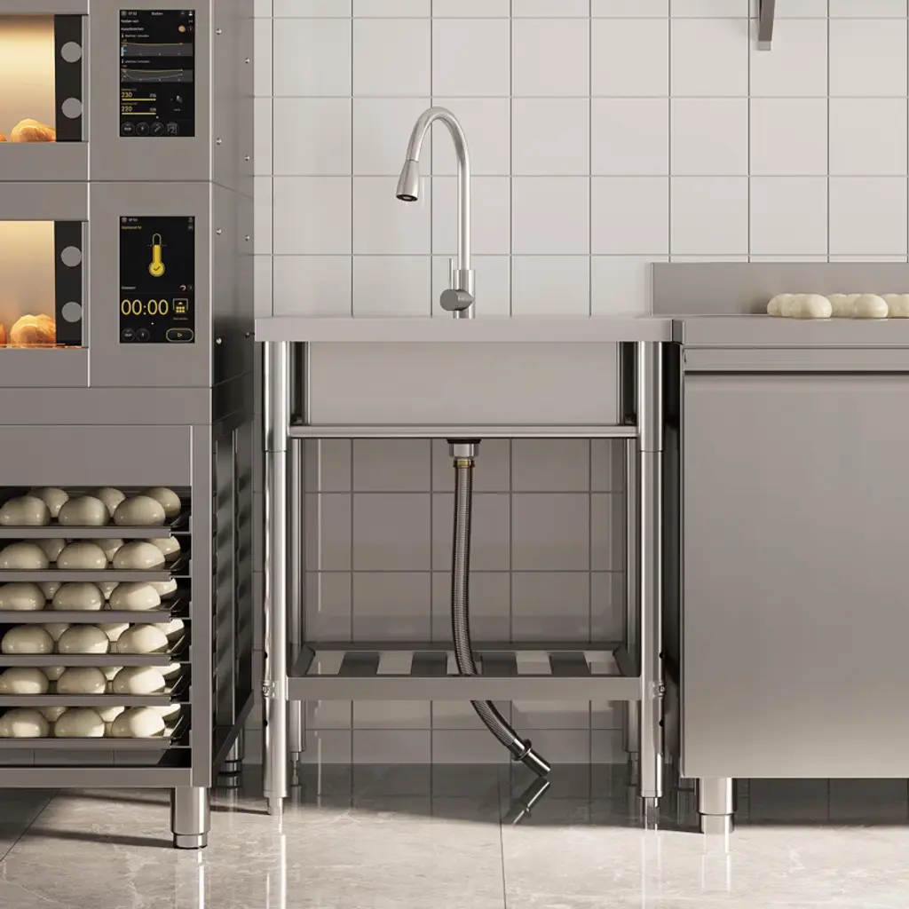 Stainless Steel Kitchen Sink, Drop-in Utility Sink Free Standing Double Bowl With Cold And Hot Water Pipe For Restaurant Kitchen