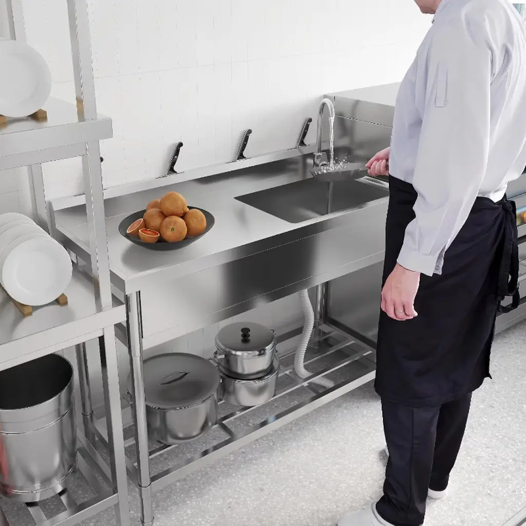 Stainless Steel Kitchen Sink, Drop-in Utility Sink Free Standing Double Bowl With Cold And Hot Water Pipe For Restaurant Kitchen