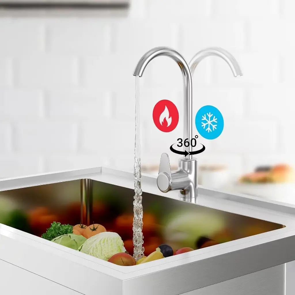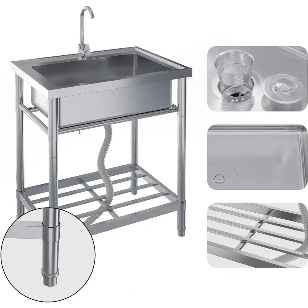 Stainless Steel Utility Sink, 28" Free Standing Indoor Outdoor Single Bowl Kitchen Laundry Sink With Cold And Hot Water Pipe