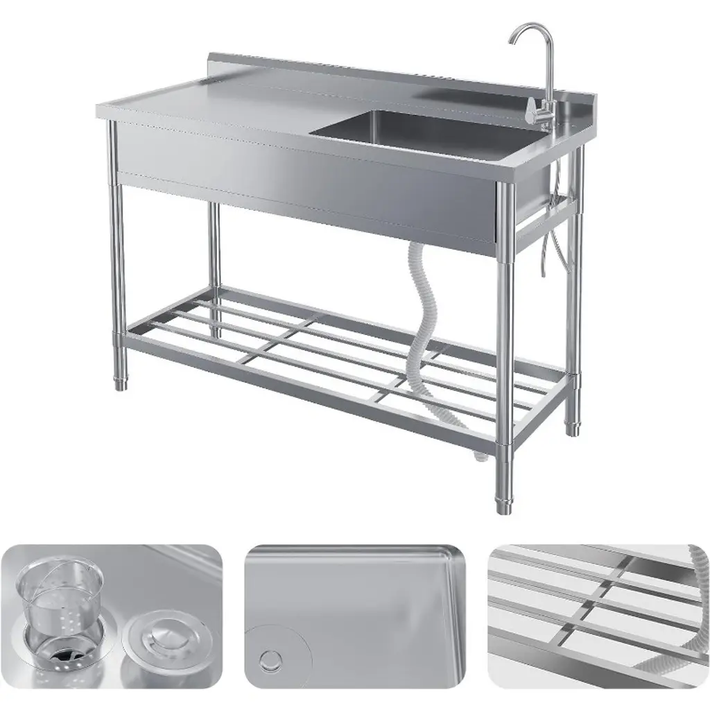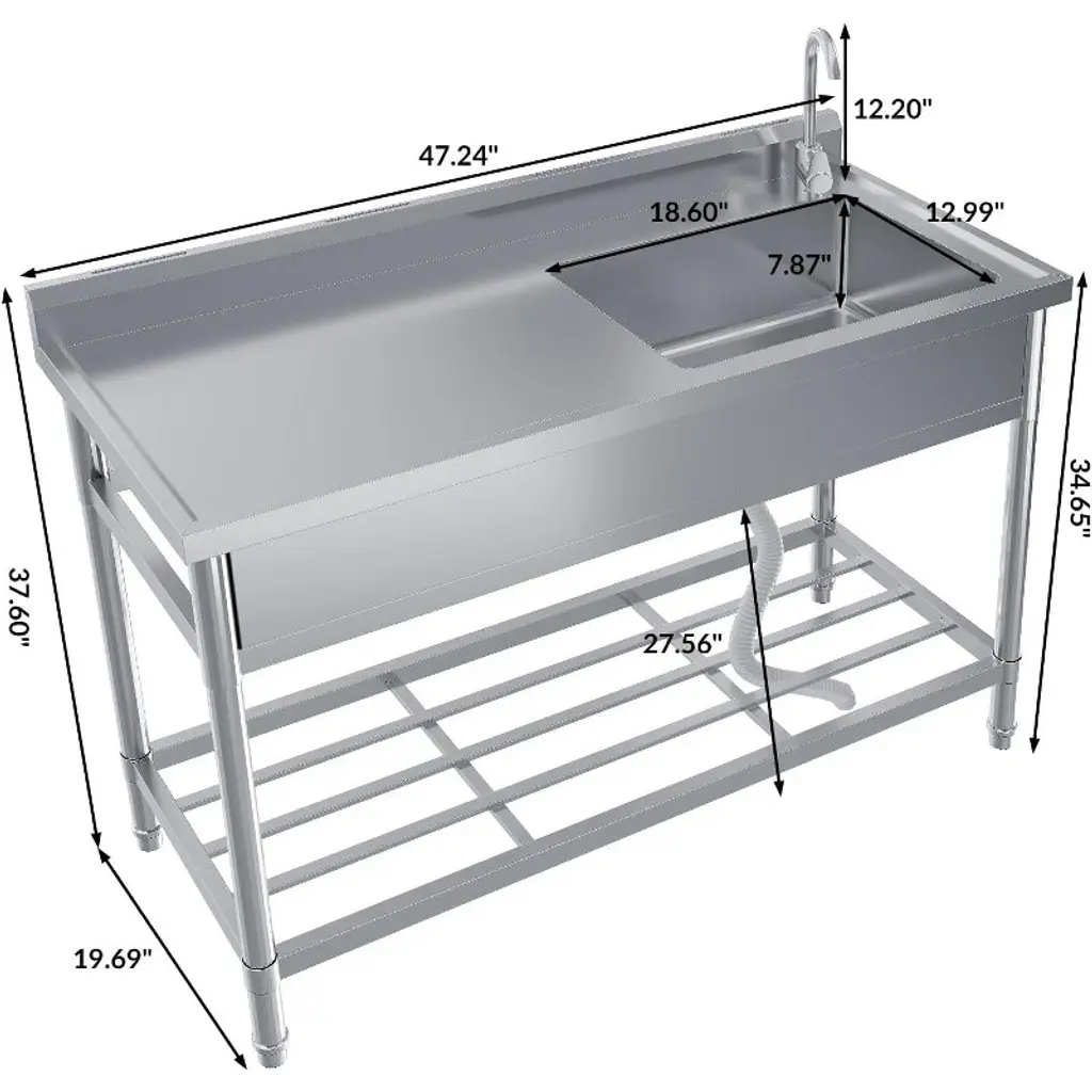Stainless Steel Utility Sink, 47 Inch Single Bowl Free Standing Sink With Workbench, Faucet & Hot & Cold Water Plumbing For Laundry Room