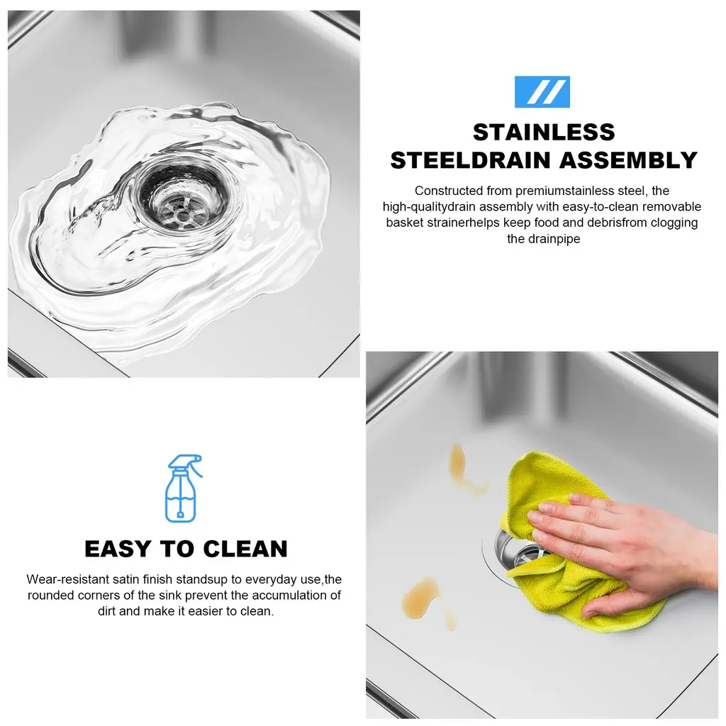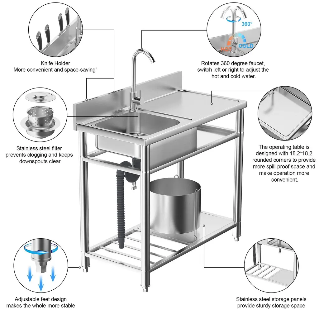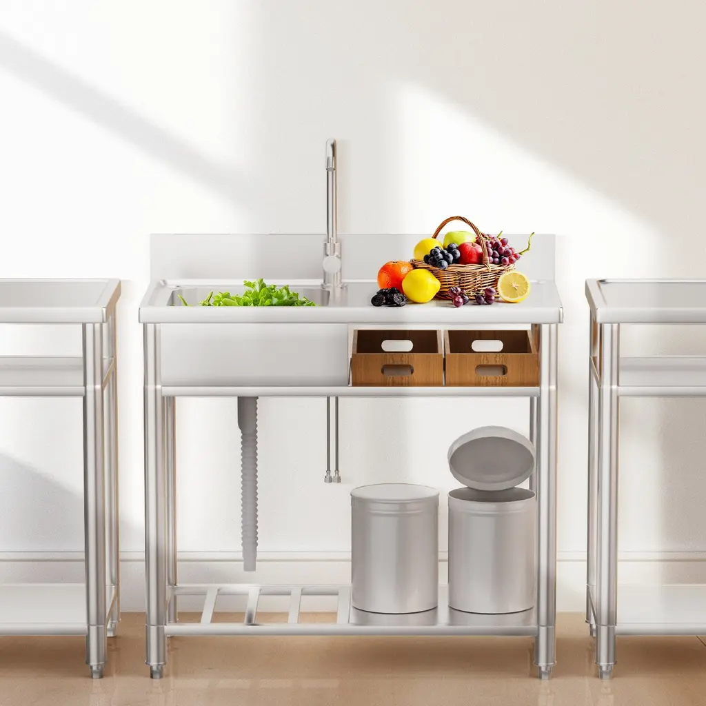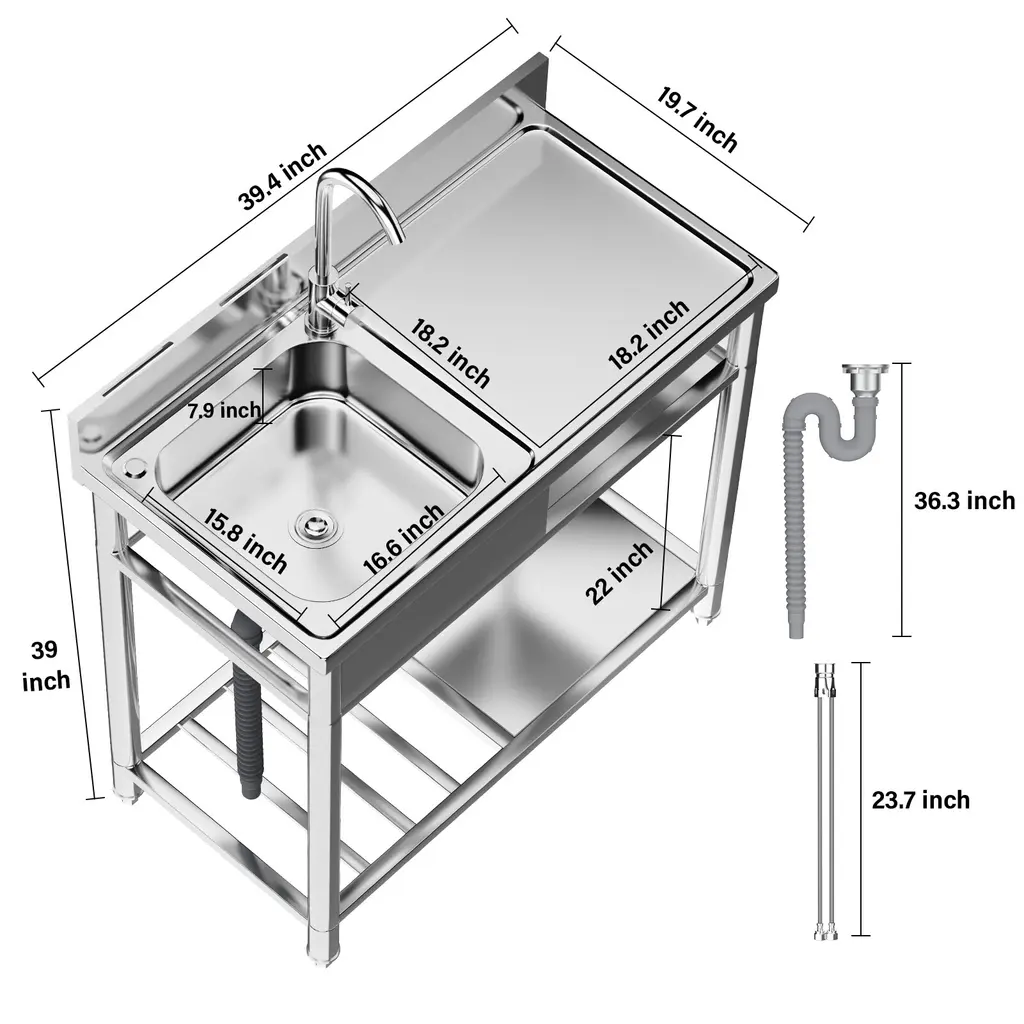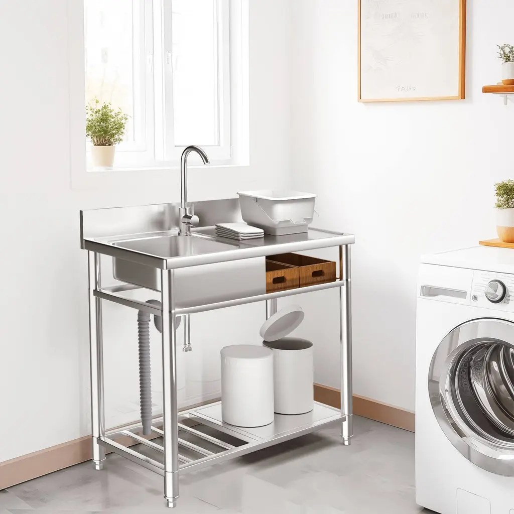Stainless Steel Utility Sink, Free Standing Single Bowl Kitchen Sink With Cold And Hot Water Pipe - 19.7"d X 39.4"w X 39"h