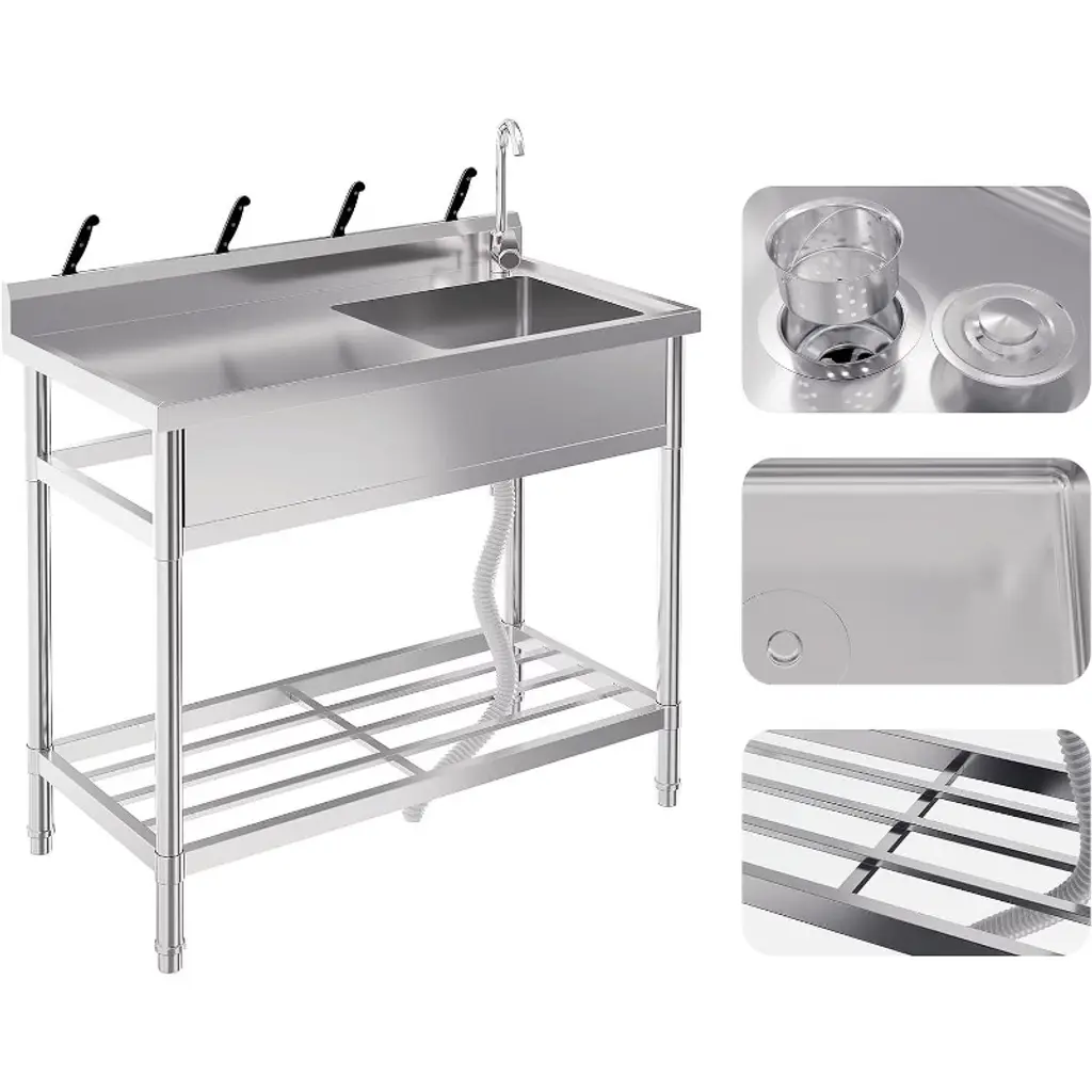 Stainless Steel Utility Sink, Freestanding Single Bowl Design With Hot/cold Water Pipes, Includes Faucet, Storage Rack, For Garage, Restaurant