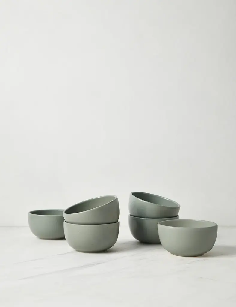 The 6-bowl set is the perfect starter for your minimalist dining table. Simply choose your favorite color and mix and match to build a set that's perfect for you. The organic shapes of the bowls add subtle interest to any tablescape. Each set includes 6 bowls.