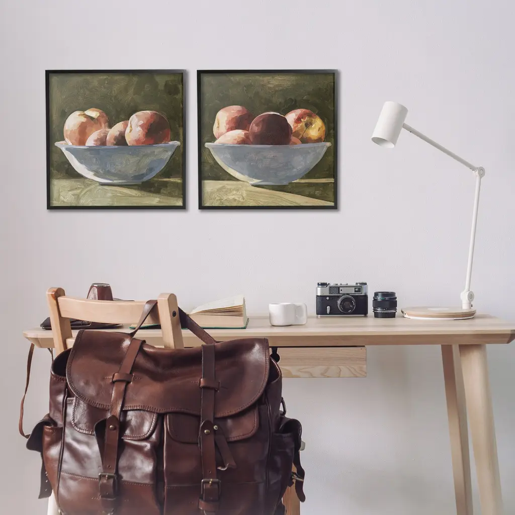 Fill any space in your home or office with our Framed Wall Art Sets. Our framed artwork is securely mounted into a 1.5-inch thick wood grain frame and ready to hang. Frames are available in three alluring styles: black, gray farmhouse and white. Stupell Wall Art is made in the USA.Features: Dimensions: 2 Piece Set, Each Panel is 12 x 1.5 x 12 FramedTwo Piece Framed Giclee Sets are available as 12"x12", 17"x17" or 24"x24" Panels. All Framed giclee Products have a 1.5" Depth.Wall Art is Ready to Hang with Hardware Free Hanging. No installation required. For Easy Set Up Lean or Layer Artwork on Shelf or Against Wall.Curated Wall Art Sets make it easy for you complete the theme for any room. Our giclée prints are carefully mounted on a durable MDF backing, and then perfectly finished in a 1.5 inch thick woodgrain frame. Mounted frame colors include black, gray farmhouse and white. Made In USA.Artwork Relates To: Painting, Food, Fruit, Plant, Produce, Bowl, Still Life, Apple, TraditionalDesign by Emma Caroline