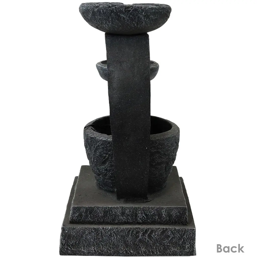 Sunnydaze Outdoor Modern Cascading Bowls Solar Powered Water Fountain With Battery Backup, Led Lights, And Submersible Pump - 28" - Black