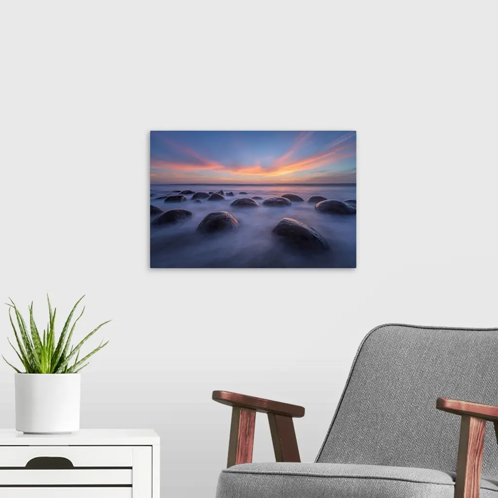 Sunset At Bowling Ball Beach wall art for home and office decor. Discover canvas art prints, photos, mural, big canvas art and framed wall art in GreatBigCanvas.com's varied collections.