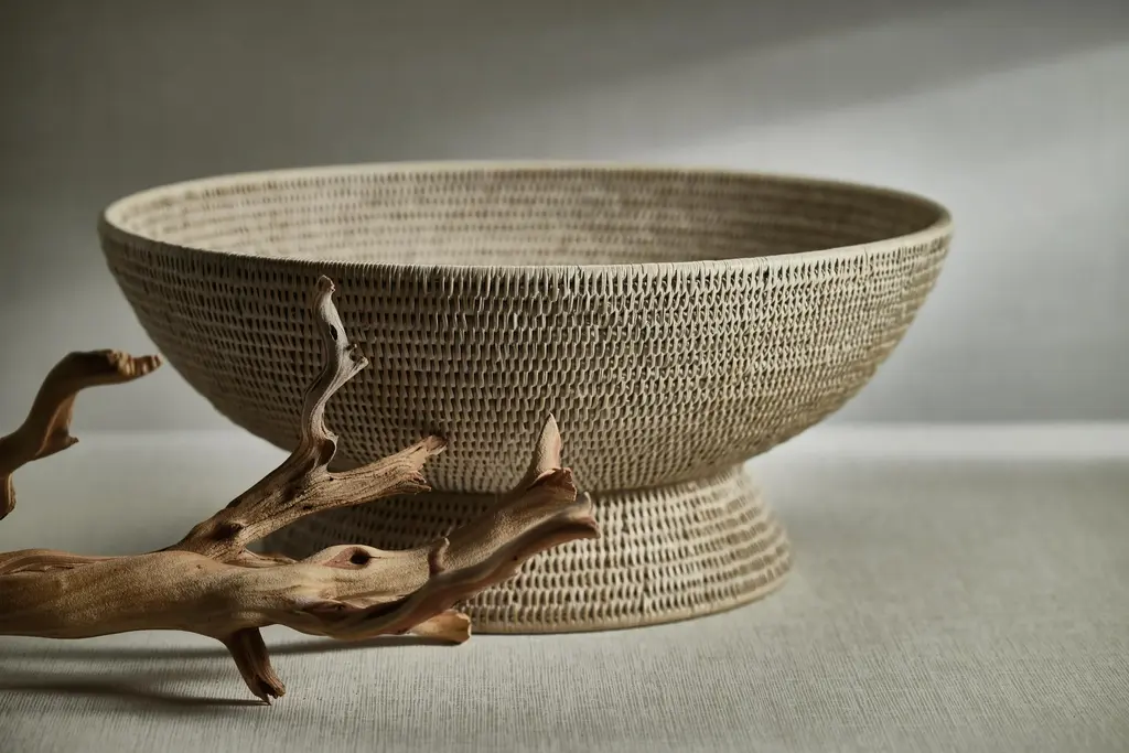 Handcrafted entirely of natural materials, this decorative bowl has an organic texture with white wash finish. Fill it with your favorite fruits and place it on a table or buffet for guests to help themselves. Care Instructions: wipe with damp cloth Assembly Required? No