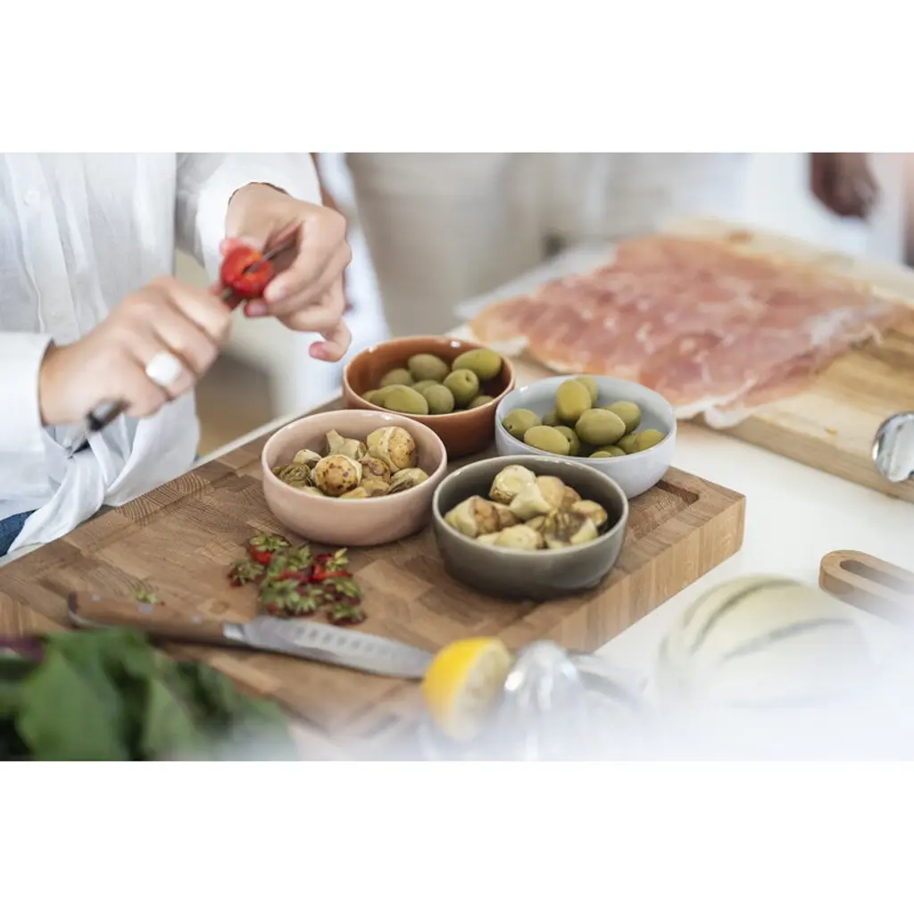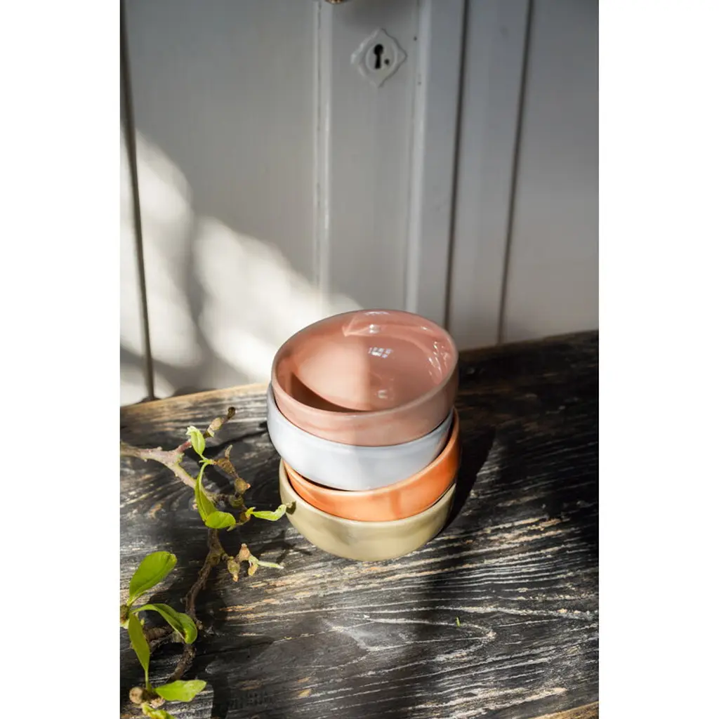 The Svelte bowl by Heirol completes the table settings with its soft appearance. This cute little bowl is ideal for serving spreads, spices, desserts and other small snacks. The Svelte bowl is a part of the Nosse Ceramics for Heirol collection, which celebrates the culture of gathering together. Svelte tableware is characterized by its versatility, simplicity, timelessness, and environment-friendly materials. The shapes and colors of the dishes combine easily together, creating harmonic and cozy table settings for both everyday and festive occasions. The elegant tableware set is made of stoneware and glazed with recycled glass.