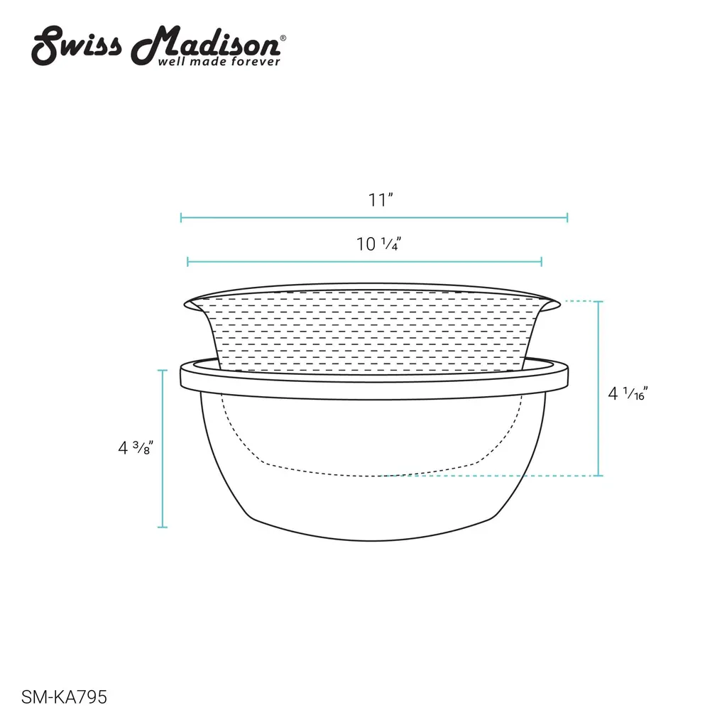 This modern style mixing bowl with colander bowl set was built with stainless steel making it lightweight and a great addition for any kitchen environment. The thick rust proof designs make these accessories durable efficient and easy to use.Swiss Madison SM-KA795 Features: