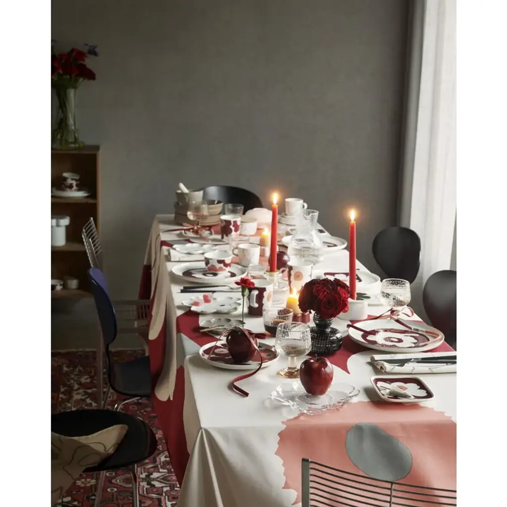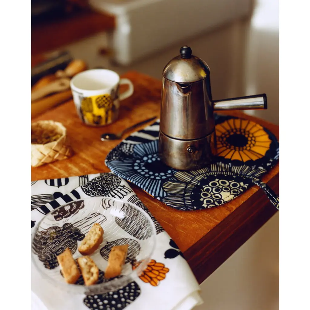 Marimekko’s Syksy bowls are adorned with a beautifully designed relief surface by Matti Klenell, featuring subtle lines that evoke the various shapes of rustling autumn rain. Named after the Finnish word for autumn, the Syksy glassware continues Marimekko’s longstanding tradition of interpreting the moods of nature and weather phenomena. Crafted from mouth-blown glass, the series exhibits a delicately sketch-like texture that skillfully brings to life the refreshing feeling of rain. Sold in a set of two, the Syksy bowls are perfect for serving both everyday snacks as well as festive treats.