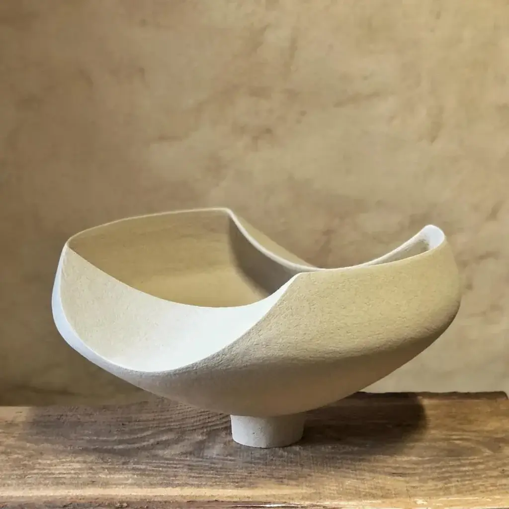 Symétrical bowl 02 bis by sophie vaidie one of a kind. Dimensions: d 43 x w 44 x h 23,5 cm. Materials: brutal beige stoneware with fine chamotte. In the beginning, there was a need to make, with the hands, the touch, the senses. Then came the desire to create and imagine objects to accompany everyday life through a timeless and poetic dimension. My relationship with clay began more than 20 years ago. It was a long inner journey before i imagined devoting myself completely to it. My work is first of all a constant search of balance and a capacity for renewal. It is the result of formal research, of the harmonious relationship between the curve and the line. The interaction between the shape and the space it draws around it. The right proportions, the detail of a curve or a line are the common threads of my creations. Then comes the technique. It allows me to inscribe the shape in the stoneware. My training was enriched with very different ceramists, allowing me to expand my knowledge and consciously choose my way of creation. My creativity is nourished by my travels, my inner reflections, my close landscape but also my work as an interior designer and most of all the encounters made throughout my journey.