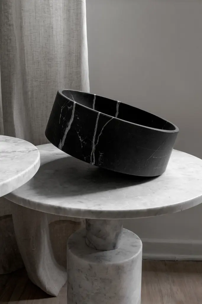 Large bowl with spinning effect in carved Veneciano white marble. Handmade in México by local craftsmen. Production time: 6-8 weeks for items without marble / 13-14 weeks for marble pieces. Shipping +10 additional business days. Casa Quieta uses natural materials such as woods, stones, fabrics etc. These materials may vary in tone, veining, and cavities due to their natural origin. This is part of the inherent beauty of materials and is not considered a flaw. Due to the artisan nature of our production process, there is a +/- 3mm measurement tolerance.