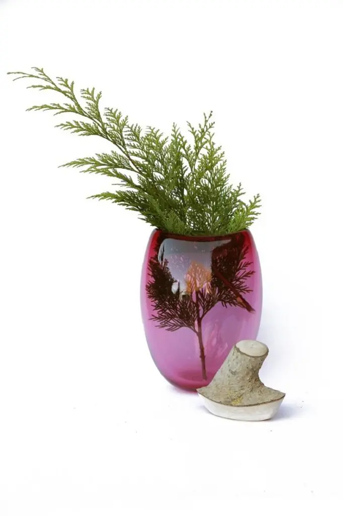 Tall hot pink branch bowl, Pia WüstenbergDimensions: D 16-18 x H 20Materials: glass, woodAvailable in other colors.A playful jar, with a lid made from a branch stub following the curvature of the glass. Branch Bowls are blown without a mould: their outer rim is originally the inside of the glass bubble, thus their round and soft edges, characteristic of this artistic process.Handmade in Europe: freehand blown glass (England), wood (Finland).The materials then come to our warehouse in North Germany where they are fitted and assembled.Pia Wüstenberg, UtopiaPia Wüstenberg is a creative with a passion for materials and craft. She graduated from the Royal College of Arts Design Products course in 2011 and was running her own freelance studio in East London till summer 2017. After this her studio relocated to rural North Germany, allowing better access to the European crafts and more time to dream. Pia is a freelance designer at Utopia and utility and owner of the brand (which involves everything from heavy lifting to drawing up new ideas).