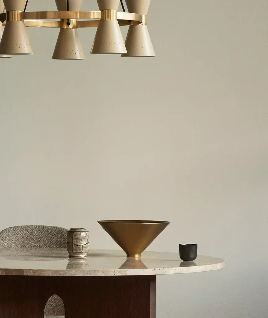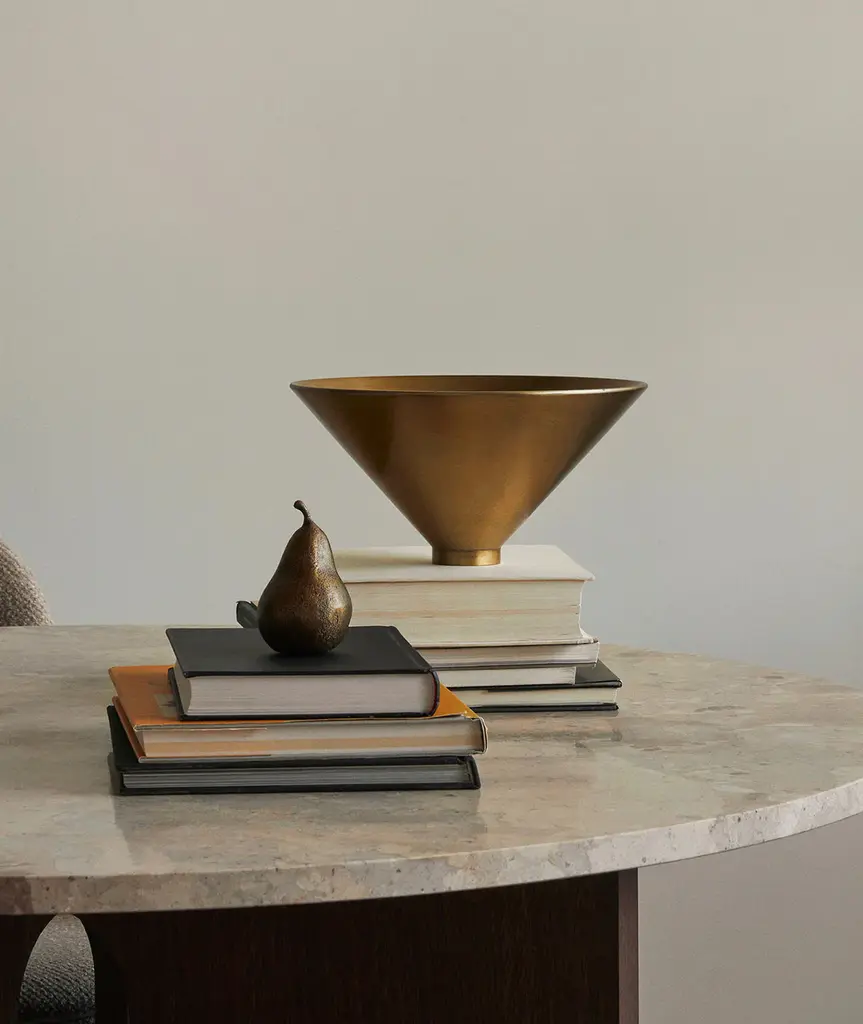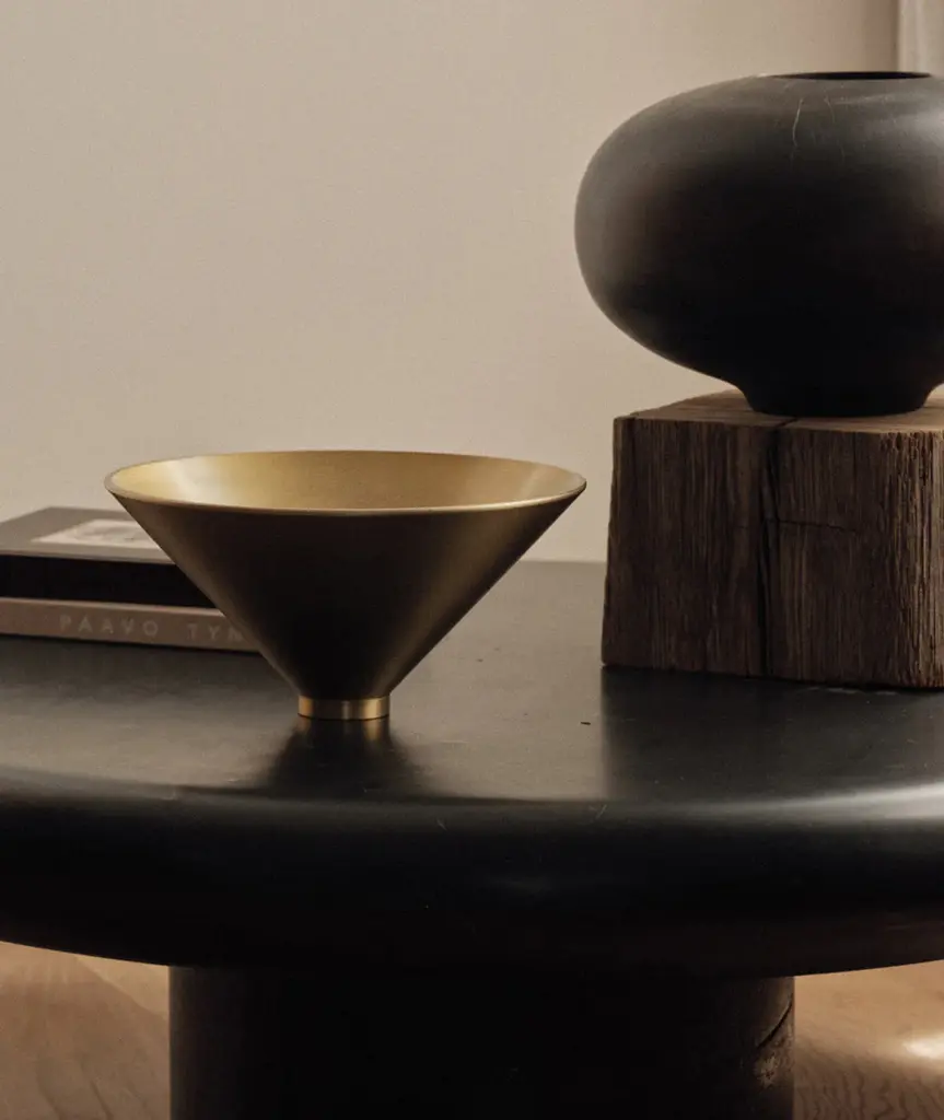 With its familiar feel, reminiscent of ancient vessels, the Taper Bowl has a restrained look that lends itself to any setting. Designed for Audo Copenhagen by master stylist Colin King, the conical metal design features a brass finish that lends warmth to interiors. Versatile in use, it works equally well as a catch-all for small items as it does left unfilled as a decorative object.