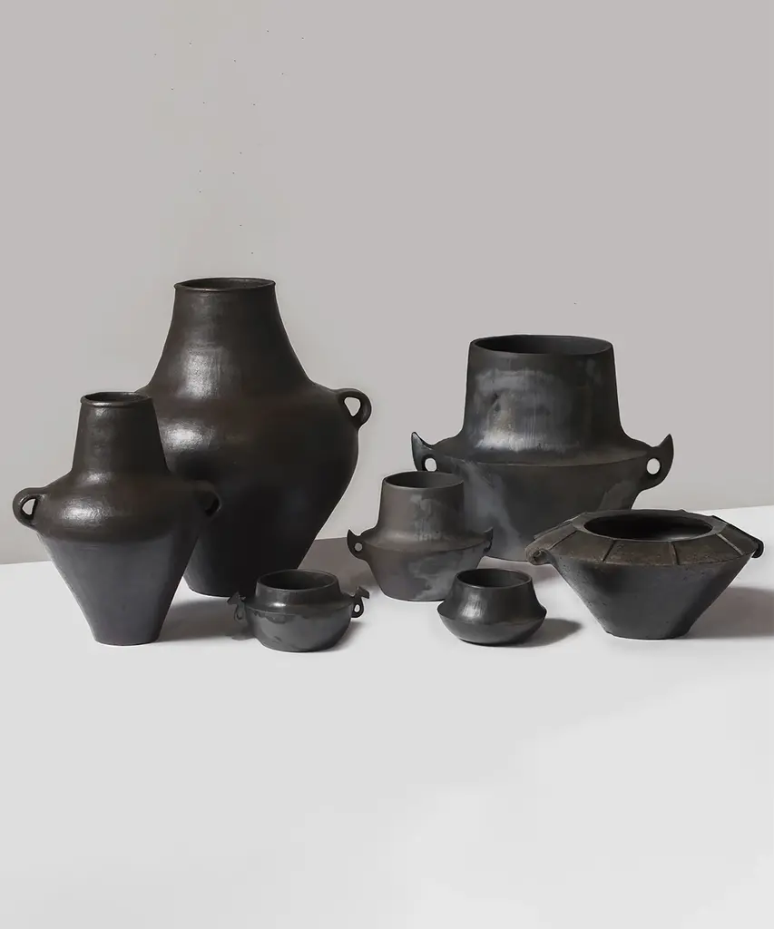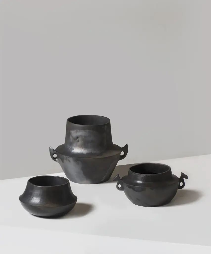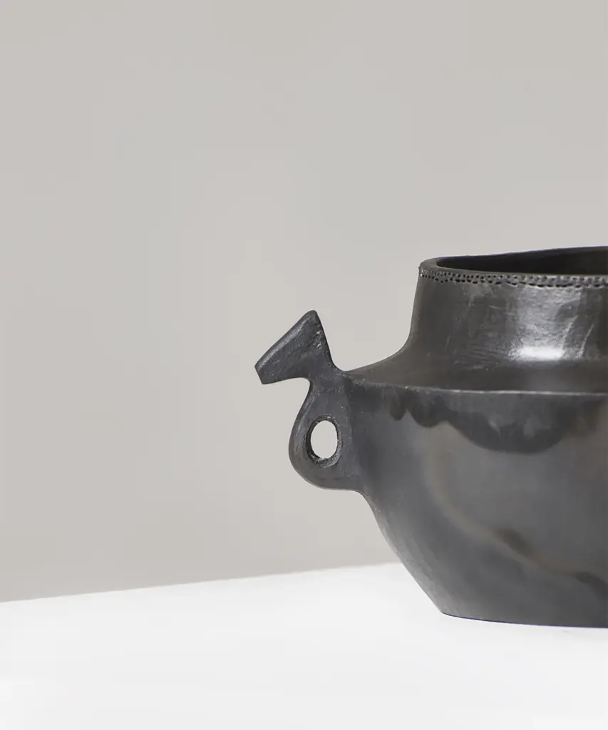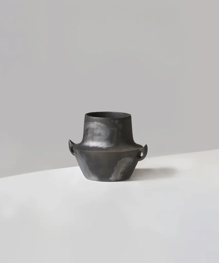 Maria Paola studies ancient forms of vessels found throughout Sardinia and then reinterprets them - choosing a specific mix of clays for each form. Each shape is painstakingly created by hand using the coil technique and then baked in a wood-fired clay oven. Rather than using glazes, she either stone polishes her pieces (creating a mystical, almost metallic finish) or treats them with a series of waxes. The Taurus Bowl is inspired by the large presence of anthropomorphic decorations in prehistoric Sardinian ceramics. Designed by Maria Paola Piras for Sardinian-based design publisher, Pretziada.