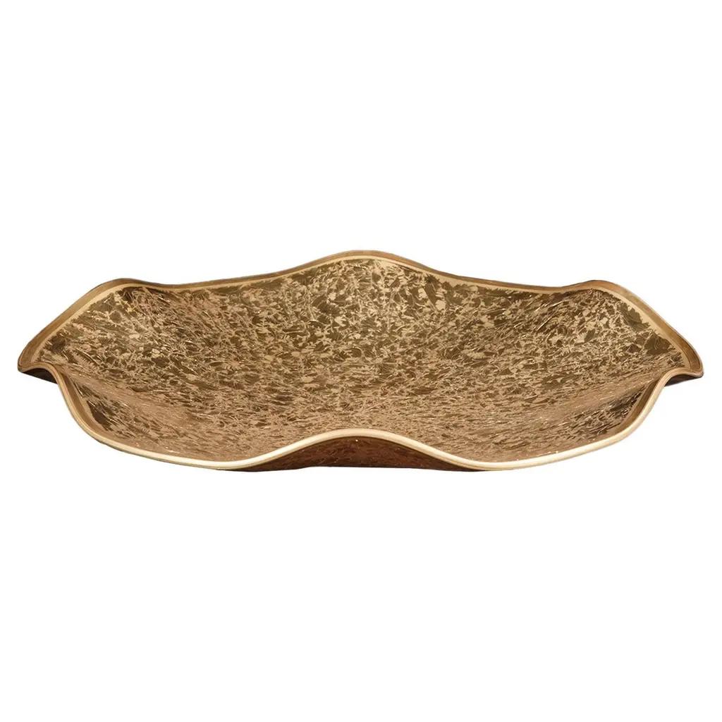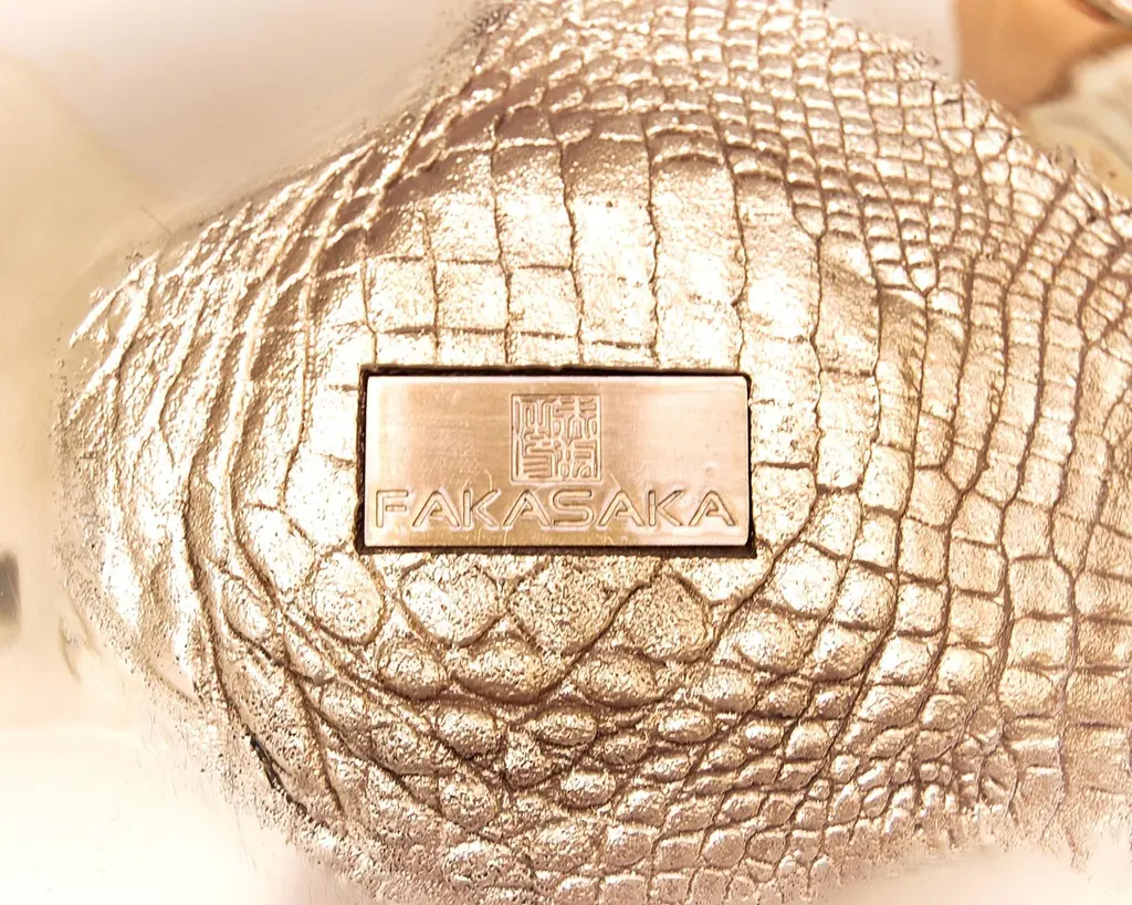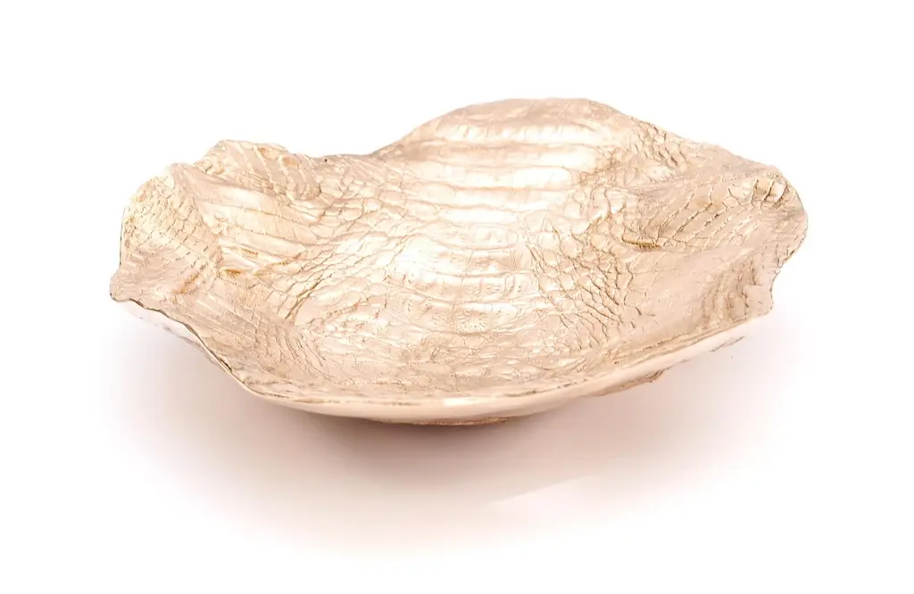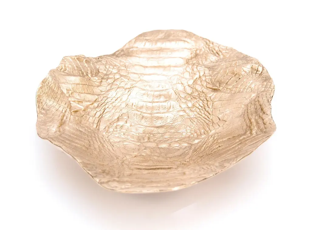 Teresa bowl by Fakasaka Design.Dimensions: W 32.5 cm D 25.5 cm H 6 cm.Materials: polished bronze. FAKASAKA is a design company focused on production of high-end furniture, lighting, decorative objects, jewels, and accessories. Established in 2007, Fakasaka is the eponymous design company by Brazilian artist Fernando Akasaka distinguished by a penchant for producing intricate detailed cast bronze collectible design objects, furniture and jewelries. Fakasaka explores the contrast between the manmade and the natural through shapes and finishes that create a clear aesthetic. The constant challenge to balance elements is met with an outcome that is a striking assortment of bronze furniture and objects in oxidised and polished finishes, accented with precious regional stones, granites and rich prehistoric reptilian motifs.