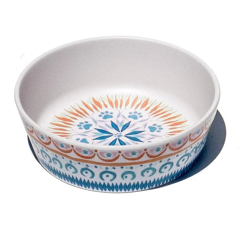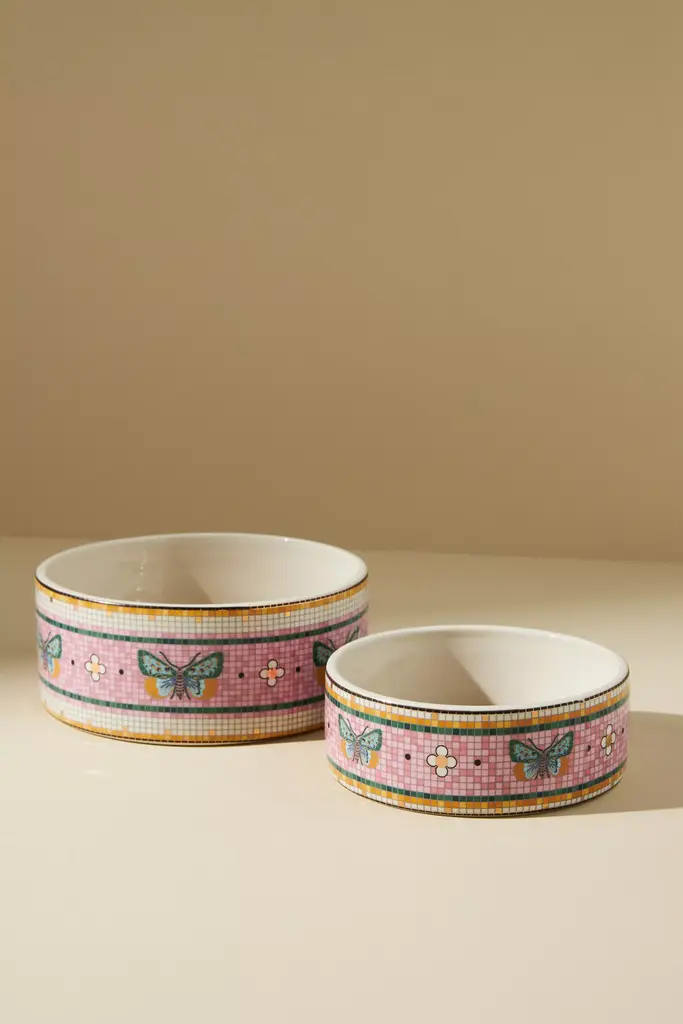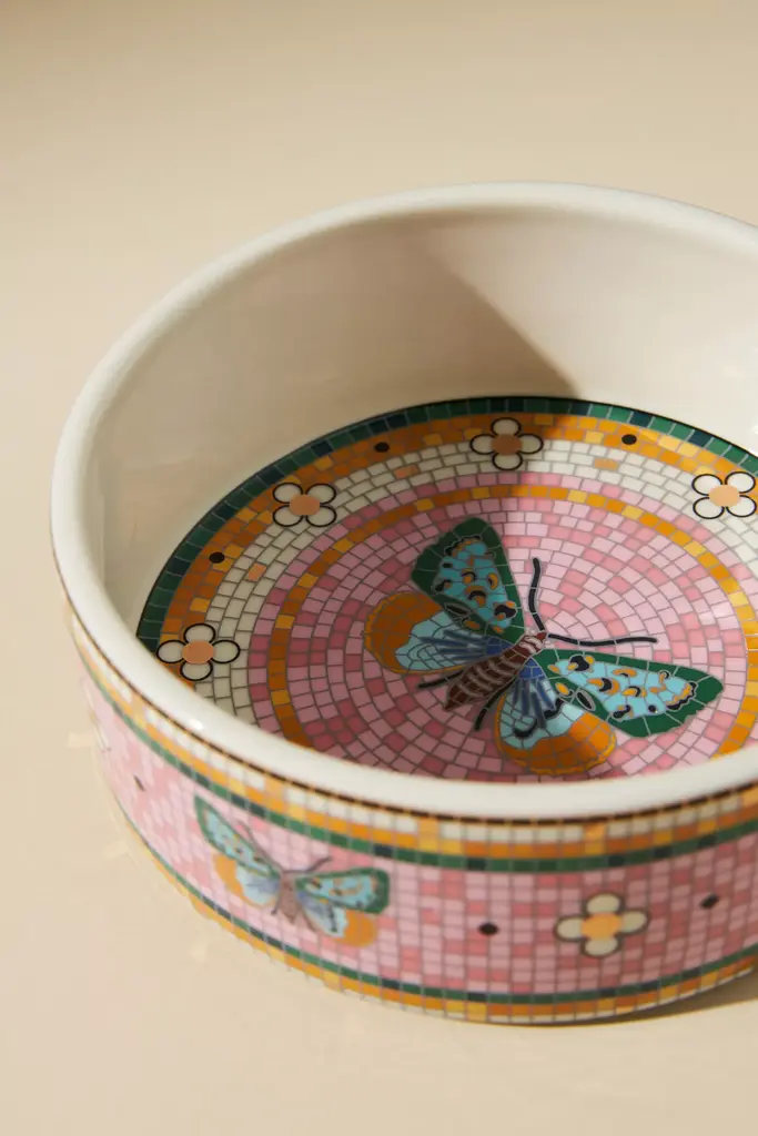The Bistro Tile Small Stoneware Dog & Cat Bowl: Garden Edition