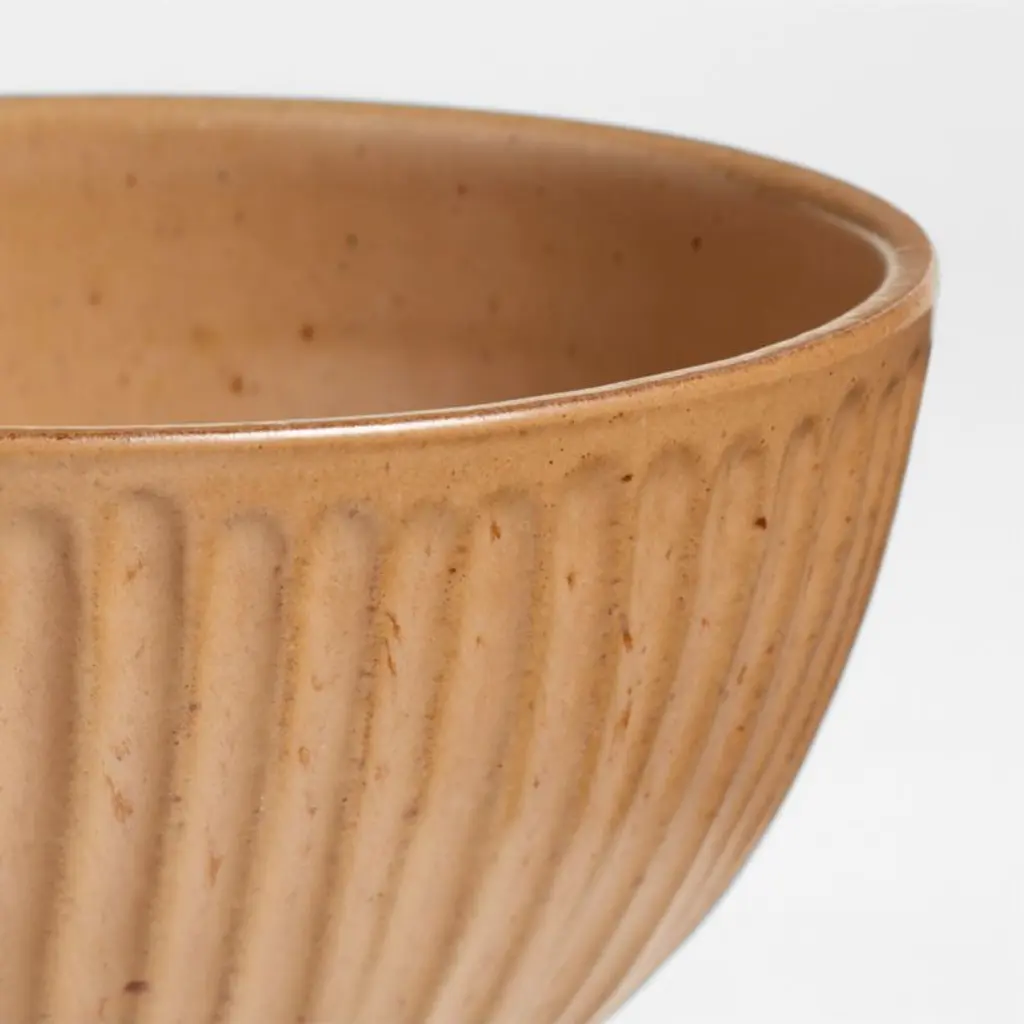 Gaby's everything bowl is just that. Casual and oversized, this is your go-to bowl for all-in-one mealshearty salads, rice and noodle dishes, soups and acai bowls. Each terracotta bowl is finished by hand with a spice-inspired orange reactive glaze that creates unique constellations of tiny flecks. Textured with perfectly imperfect fluting, the bowl cozies up meals with rustic chic.Laid-back vibes, effortless entertaining. We tapped chef and cookbook author Gaby Dalkin to create this exclusive collection of beautiful serving and kitchen essentials.