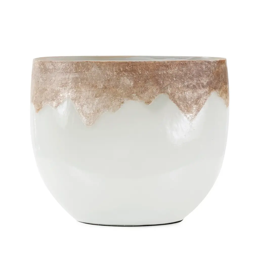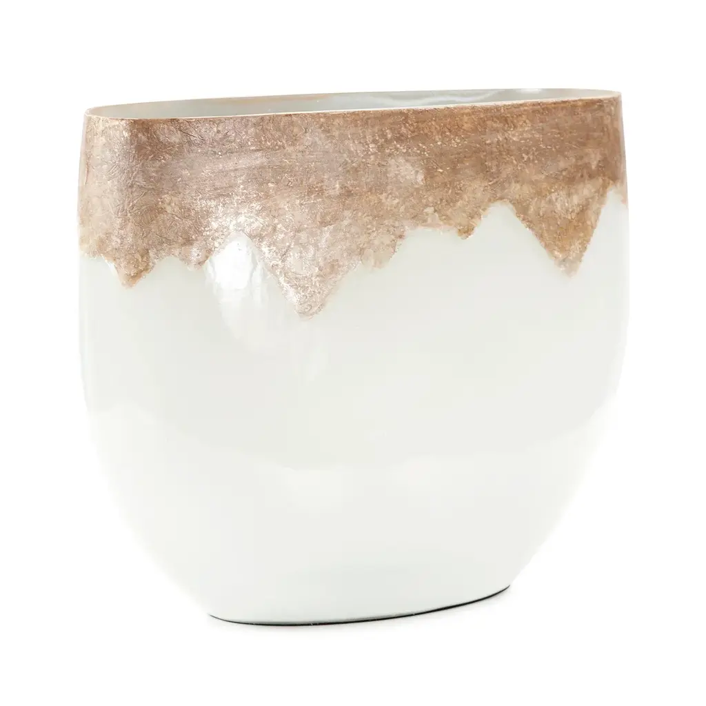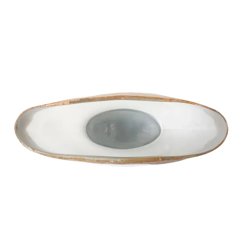 The Midas collection of glass is hand crafted and finished. Inpsired by Austrian artist Gustav Klimt, these amazing works of gold and white art glass are individually created. The abstract textured gold with white of the large oval bowl can add the perfect accent to any room of the house.
