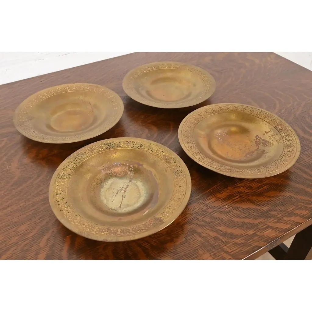 A gorgeous set of four Arts & Crafts or Art Deco period bronze shallow bowlsBy Tiffany Studios (signed to the underside)New York, USA, Early 20th CenturyEach measures: 9"W x 9"D x 1.38"H.Good original vintage condition, with beautiful patina.