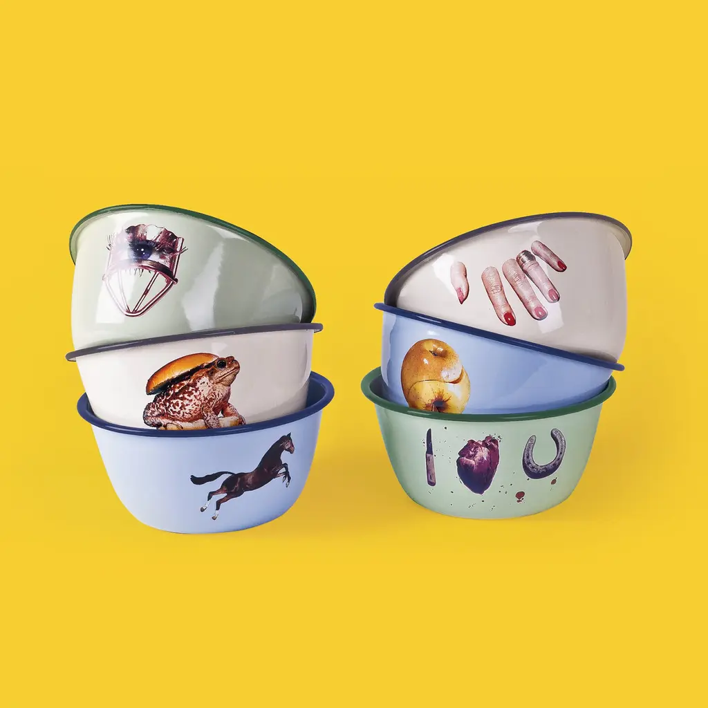 The Seletti Wears TOILETPAPER Enamel Bowl is a unique and imaginative addition to any table. Known for its bold and unconventional designs, this collection showcases surreal graphics that make a statement. Crafted from durable enamelware, the bowl is dishwasher safe but not microwave-safe. Ideal for those who enjoy playful and artistic home accessories, it brings a creative edge to everyday dining.