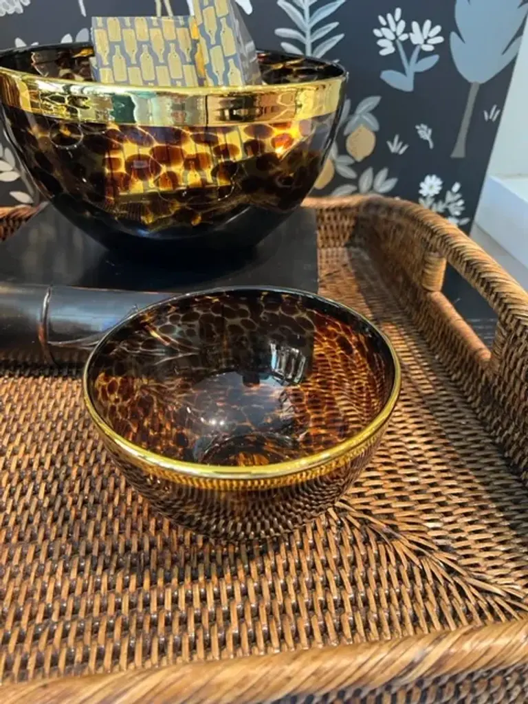 The Small Glass Tortoise Bowl The new Tortoise and Gold grouping features pieces of classic and elegant simplicity in dappled tones of amber and chocolate, all finished with borders of a brilliant gold tone. Handmade no two pieces exactly alike. This bowl works beautifully in with our tortoiseshell pieces in acrylic, too! For the table, a simply gorgeous and practical bowl in a 5 ½-inch diameter will be the one you will go to for all your serving needs. Also available in a larger, 8-inch size here on our shop. Care: Handwash - light soap and water. Designer floor samples & new product from one of the hottest To The Trade & Retail Home Furnishings showrooms in the country. Located in Chicago's chic Roscoe Village, Kenneth Ludwig Chicago carries the industries best furniture & accessory brands. Always fresh, always inspiring. Quite often ( due to a discontinued style, fabric or frame ) they must sell off their showroom floor samples. You receive first quality pieces at amazing prices. Check back weekly for new inventory added.