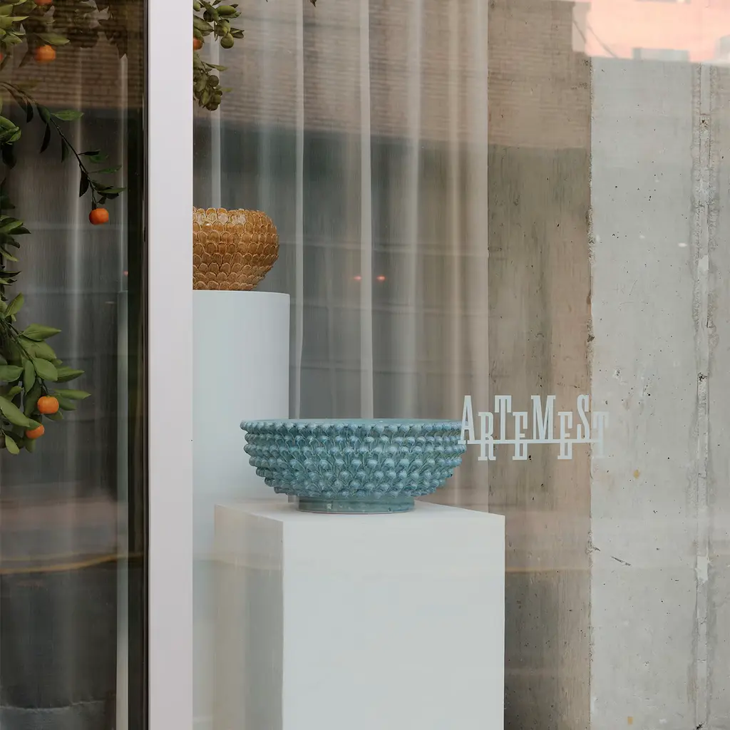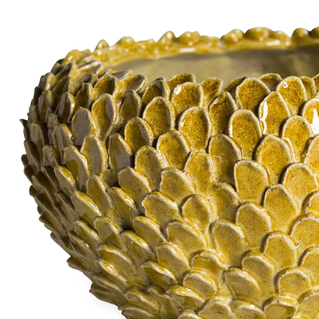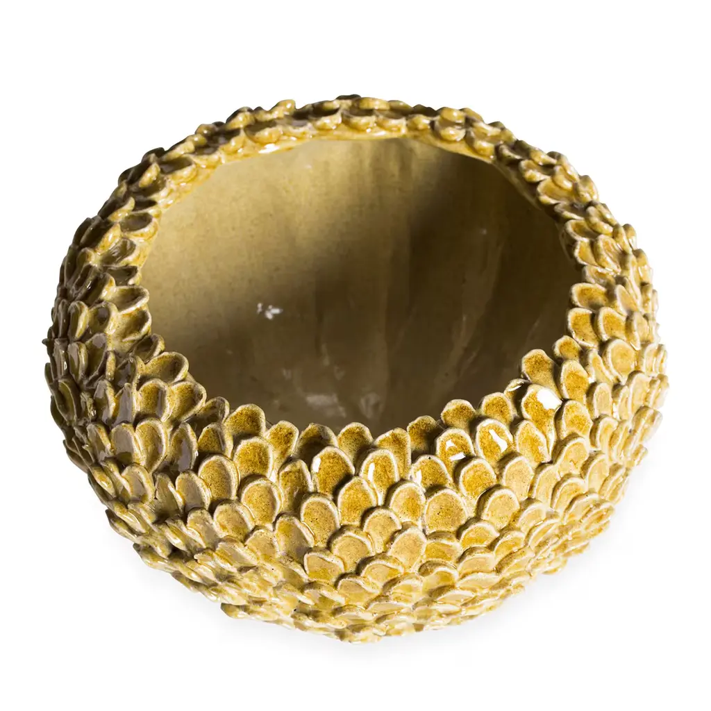 Individual petals give gorgeous texture to this earthy-yellow maiolica bowl, masterfully handcrafted by the ceramic artists of the Tuscan atelier ND Dolfi. This piece is currently on show and immediately available at Artemest Galleria New York.